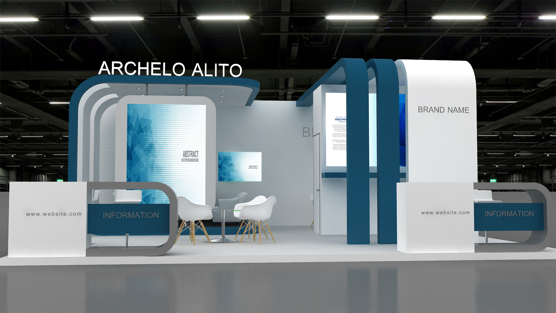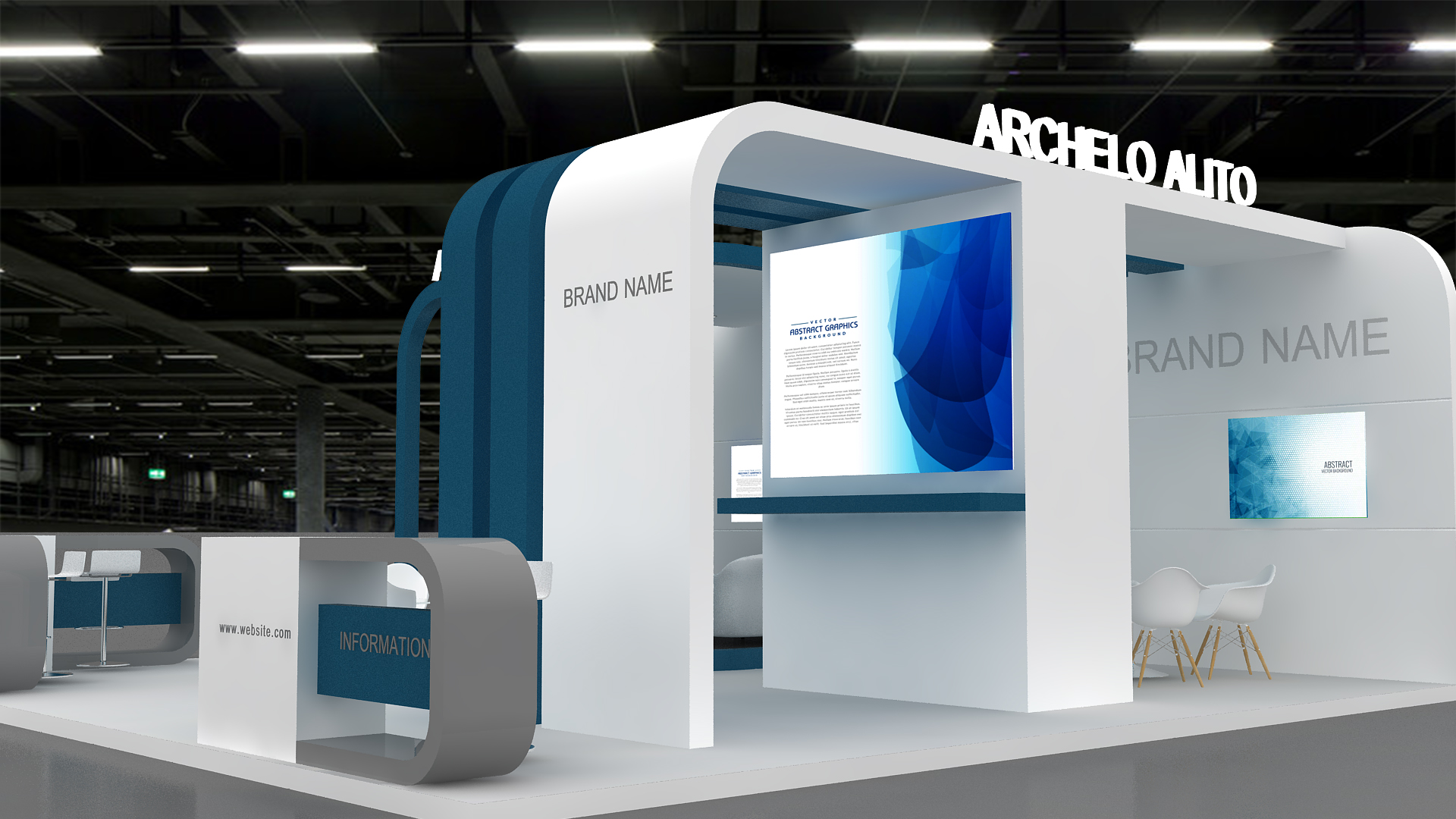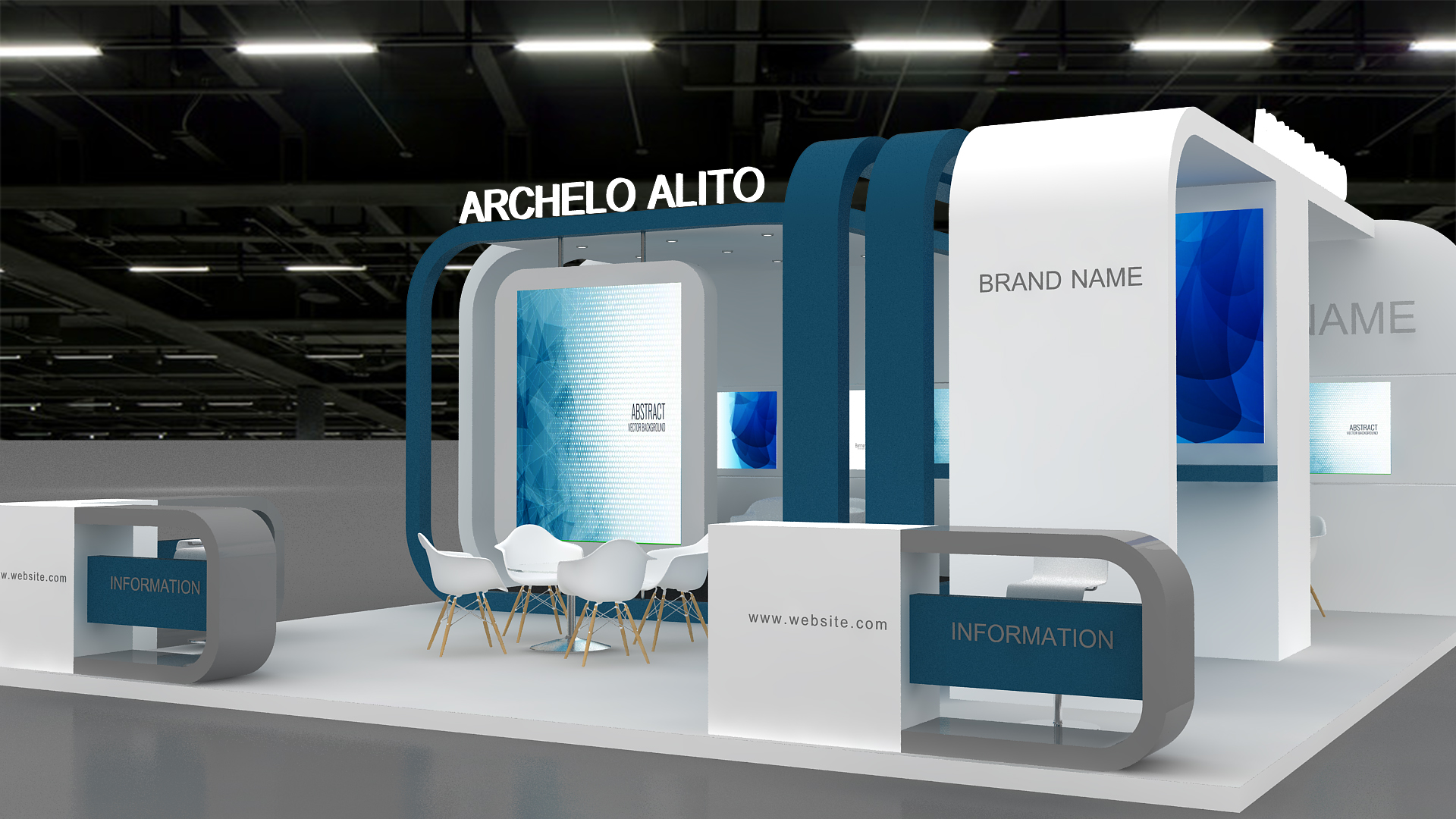 include design all necessary area in Exhibition and Booth Such as Vip and Storage and Counters and also Stand for products