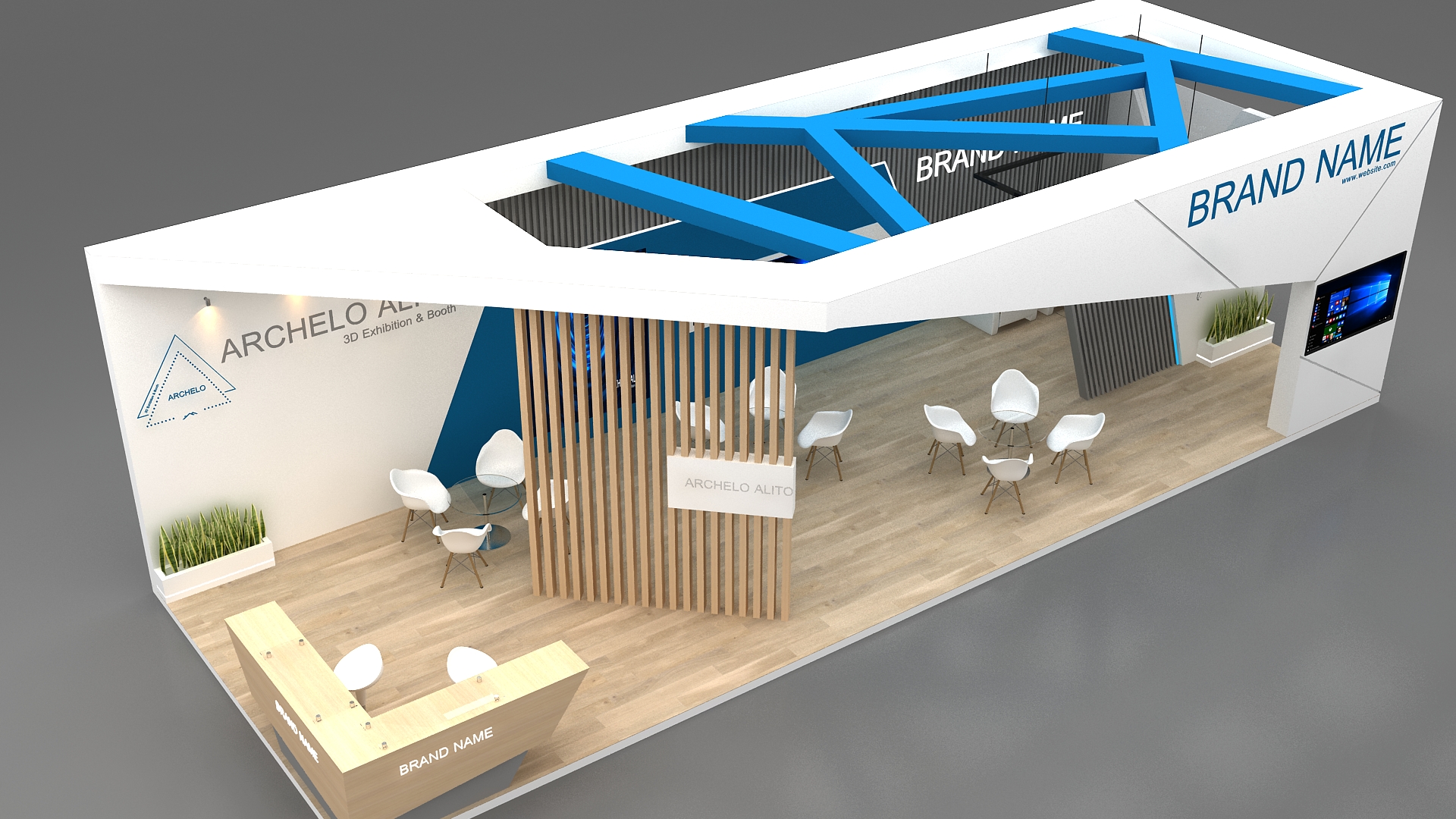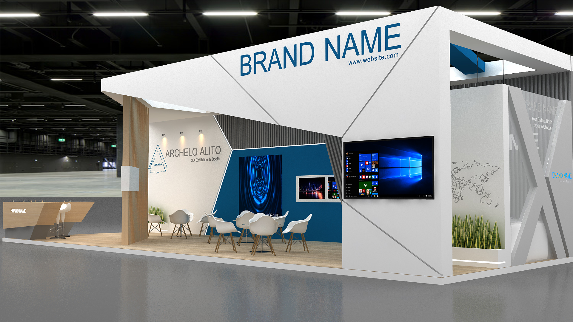 Why choose this 3D exhibition booth model? • High-quality polygon modeling with correct topology • Fully customizable design for different events and spaces