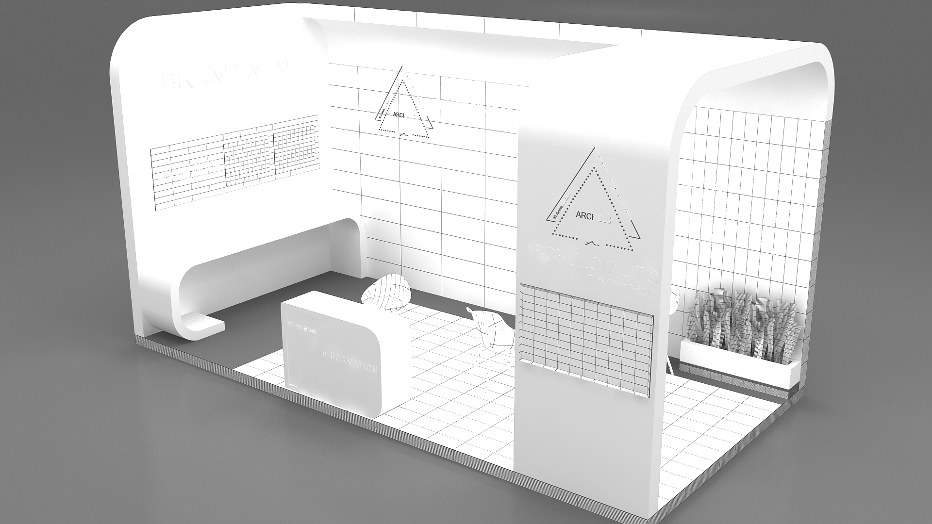 include design all necessary area in Exhibition and Booth Such as Vip and Storage and Counters and also Stand for productsFormat: 3DsMax (all version from 2016) / FBX /OBJ/