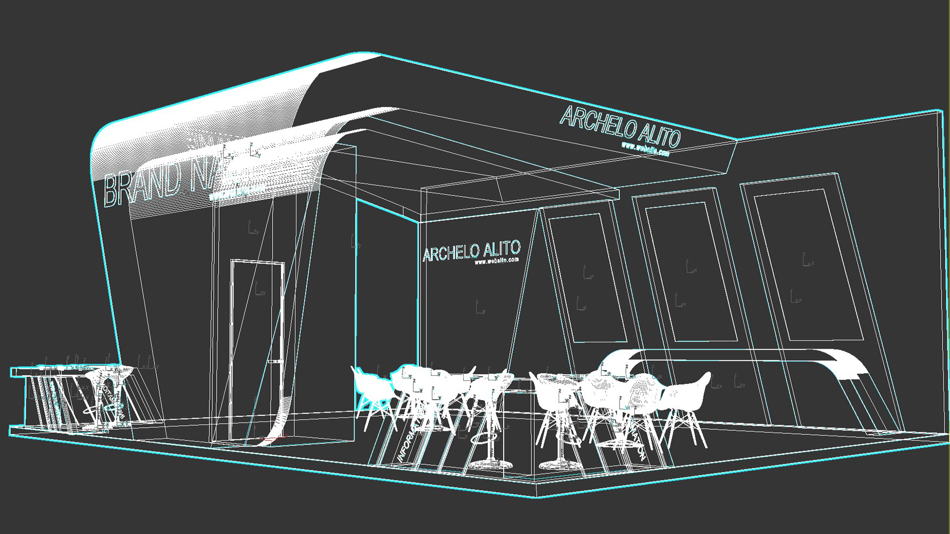 include design all necessary area in Exhibition and Booth Such as Vip and Storage and Counters and also Stand for products
