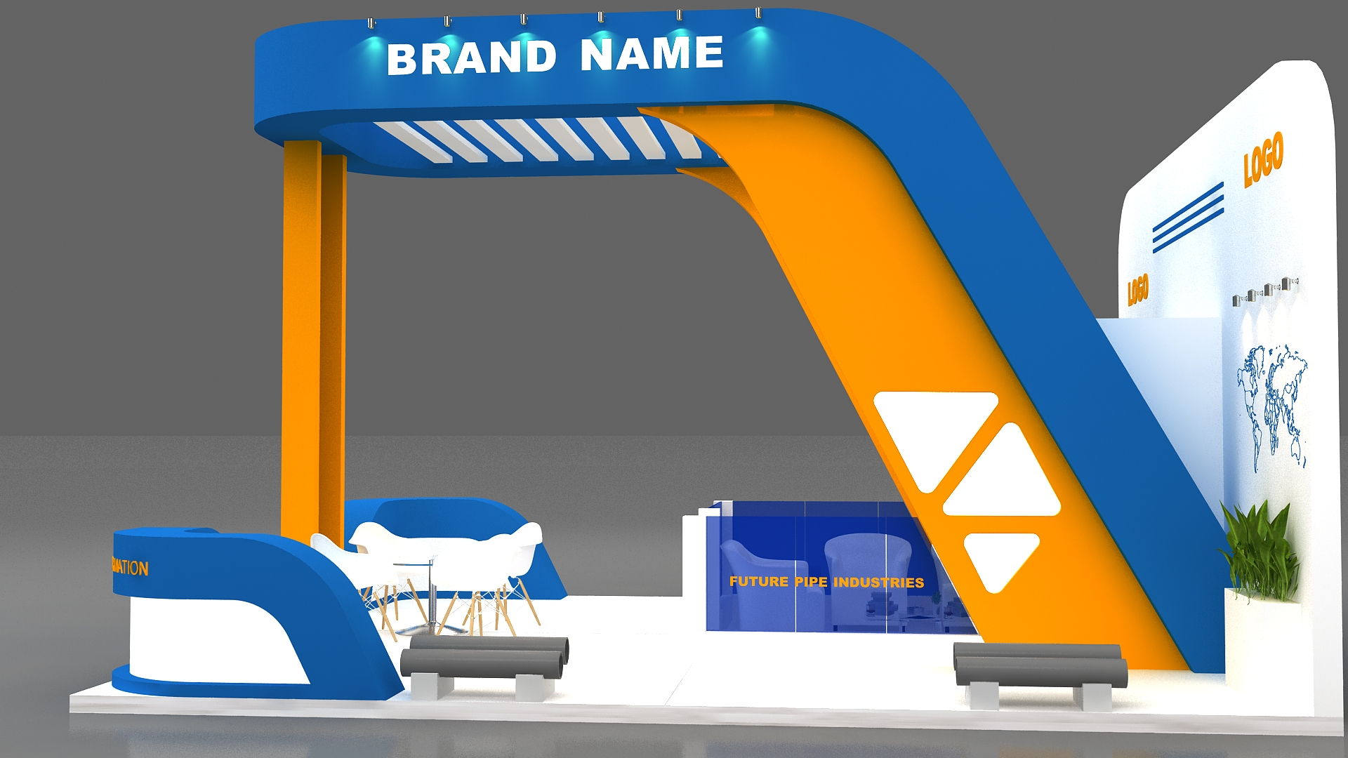 include design all necessary area in Exhibition and Booth Such as Vip and Storage and Counters and also Stand for products