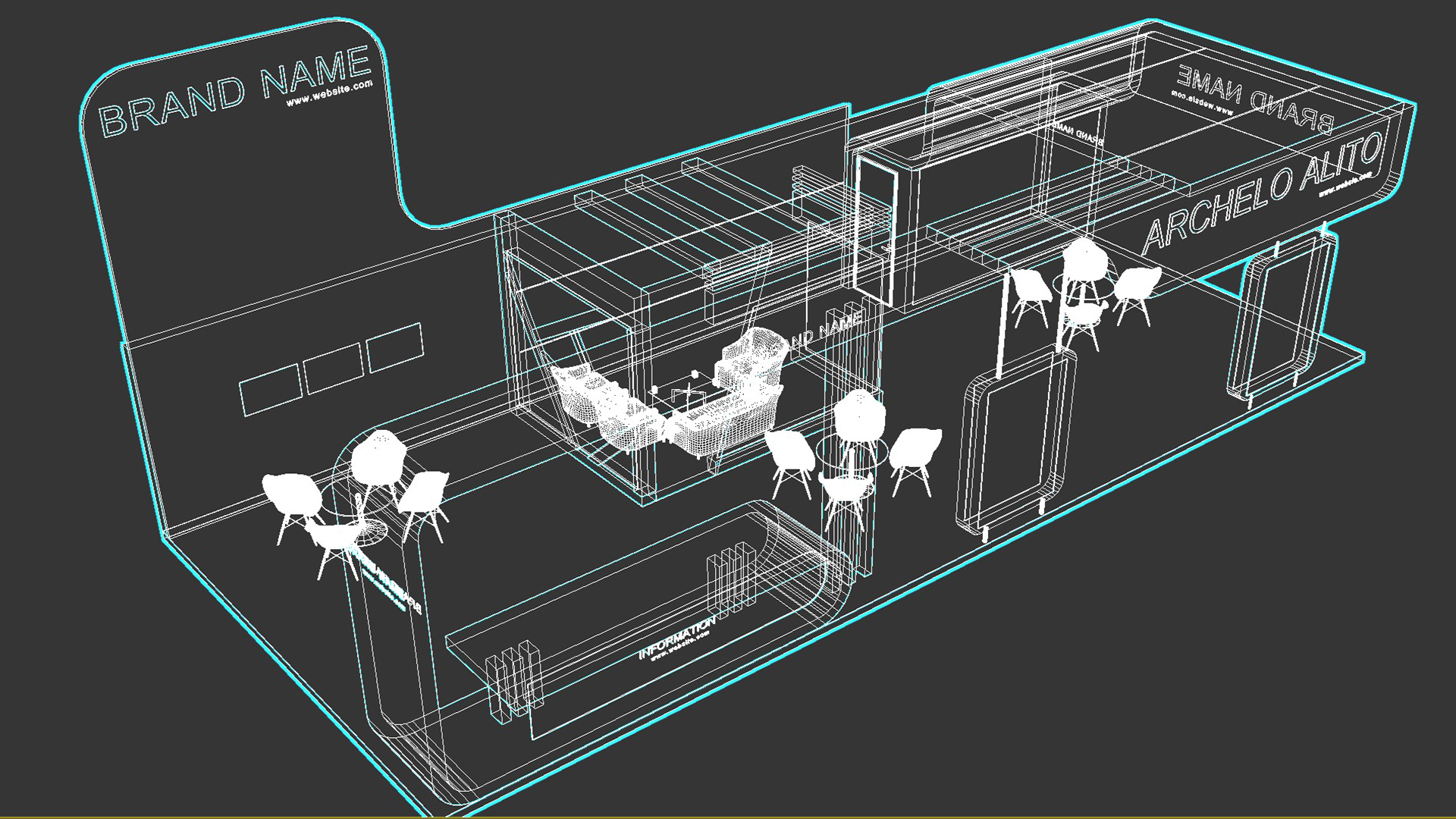 include design all necessary area in Exhibition and Booth Such as Vip and Storage and Counters and also Stand for products