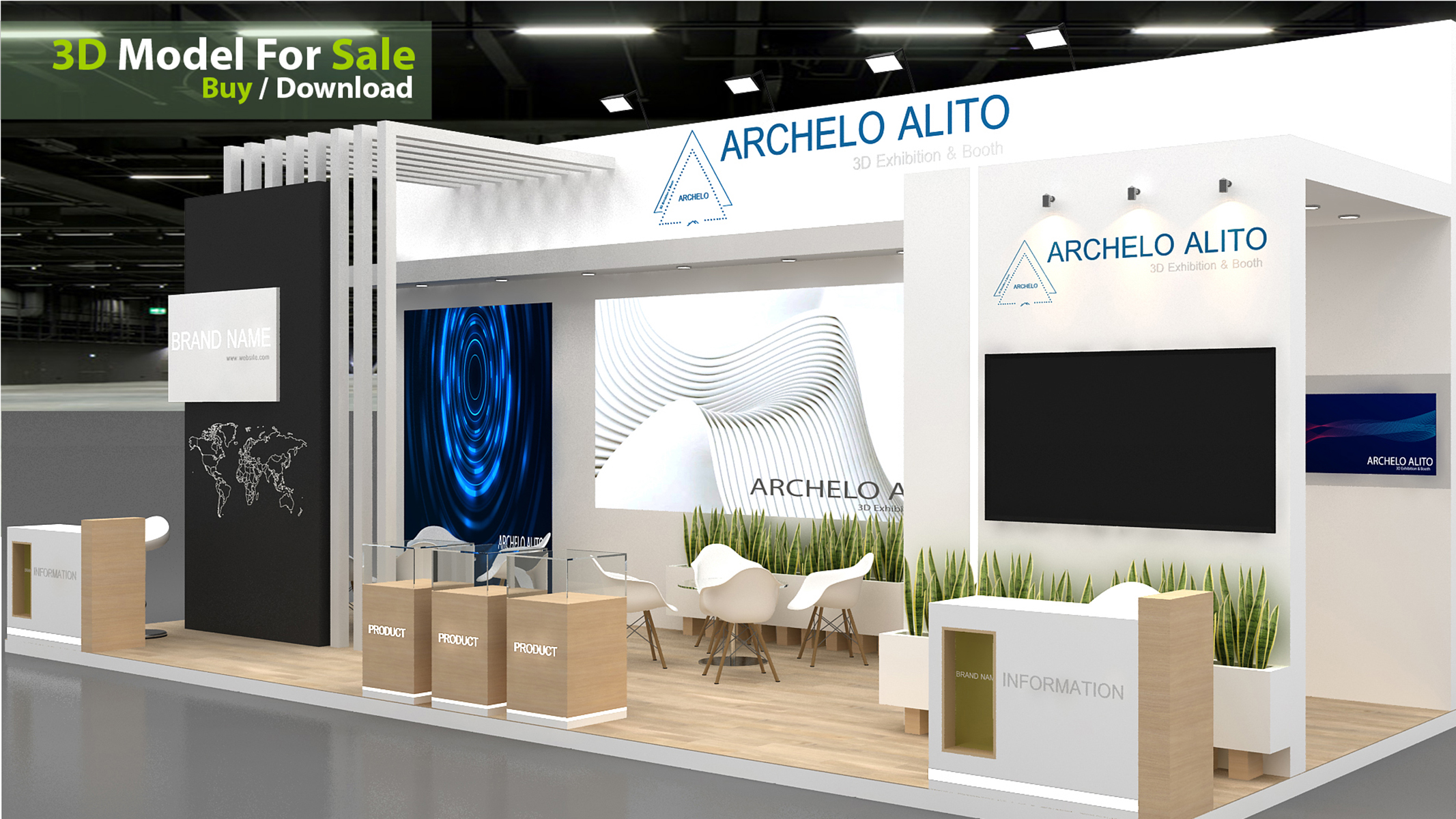 Why choose this 3D exhibition booth model? • High-quality polygon modeling with correct topology • Fully customizable design for different events and spaces