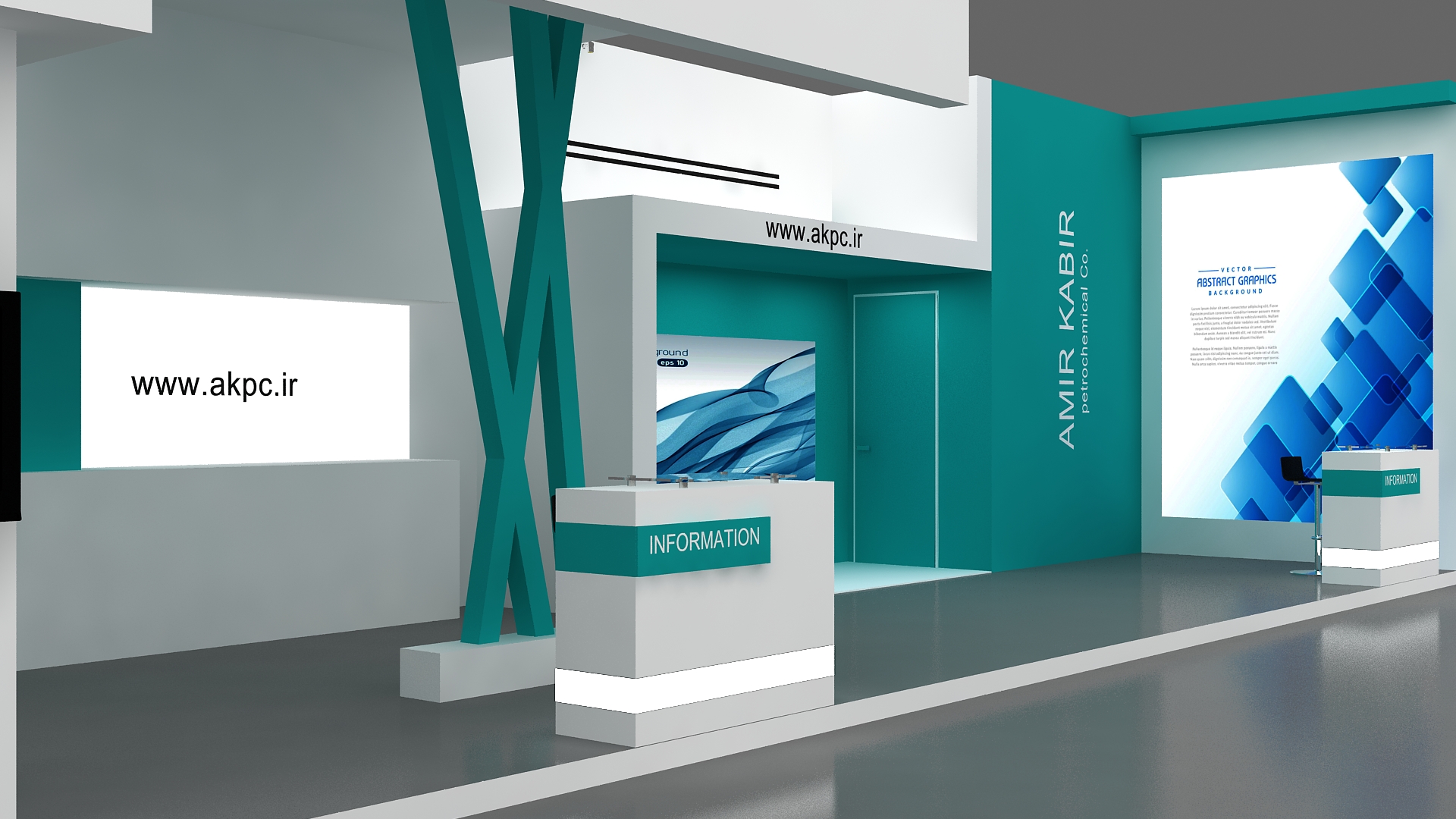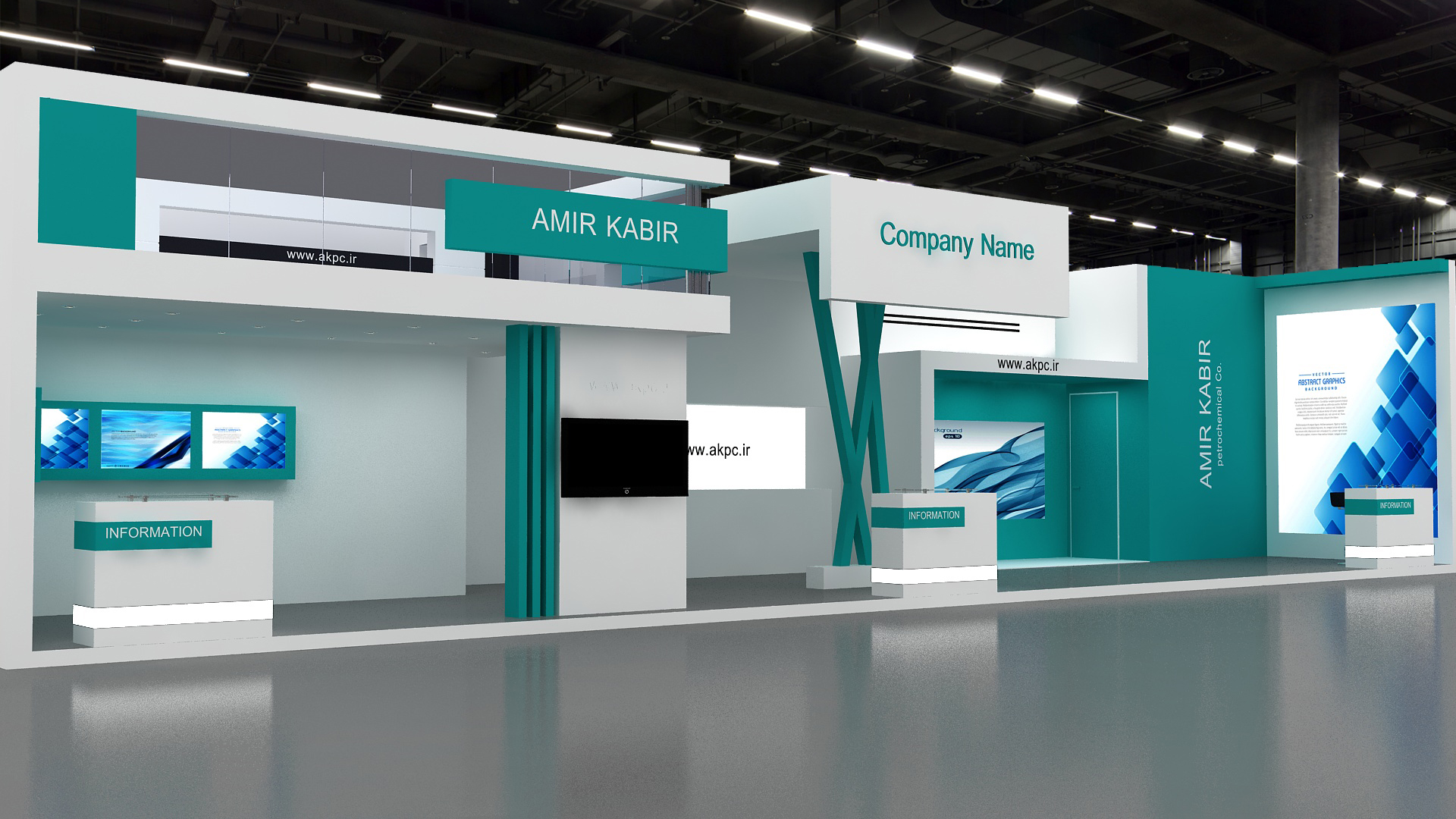 include design all necessary area in Exhibition and Booth Such as Vip and Storage and Counters and also Stand for products