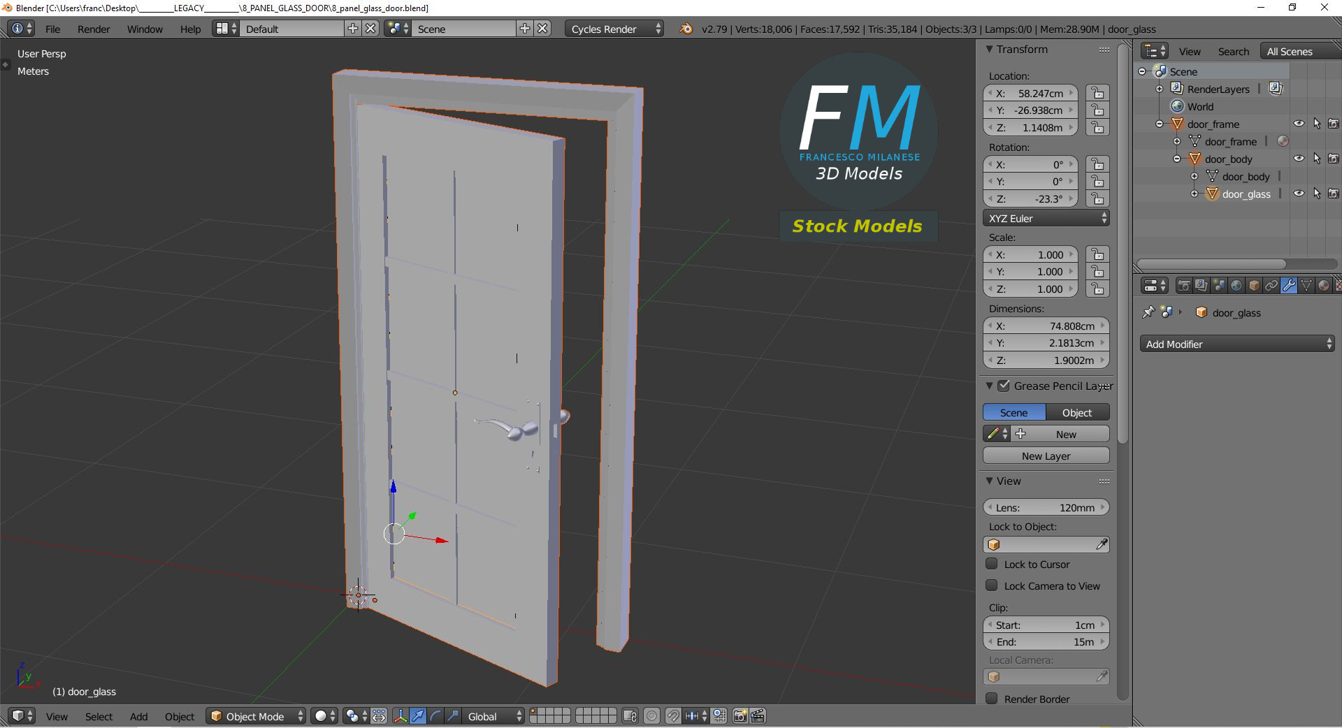 Sketchfab 3D preview: https://sketchfab.com/3d-models/8-panel-glass-door-aa7c2e66fff9472fbef89dc889157f62