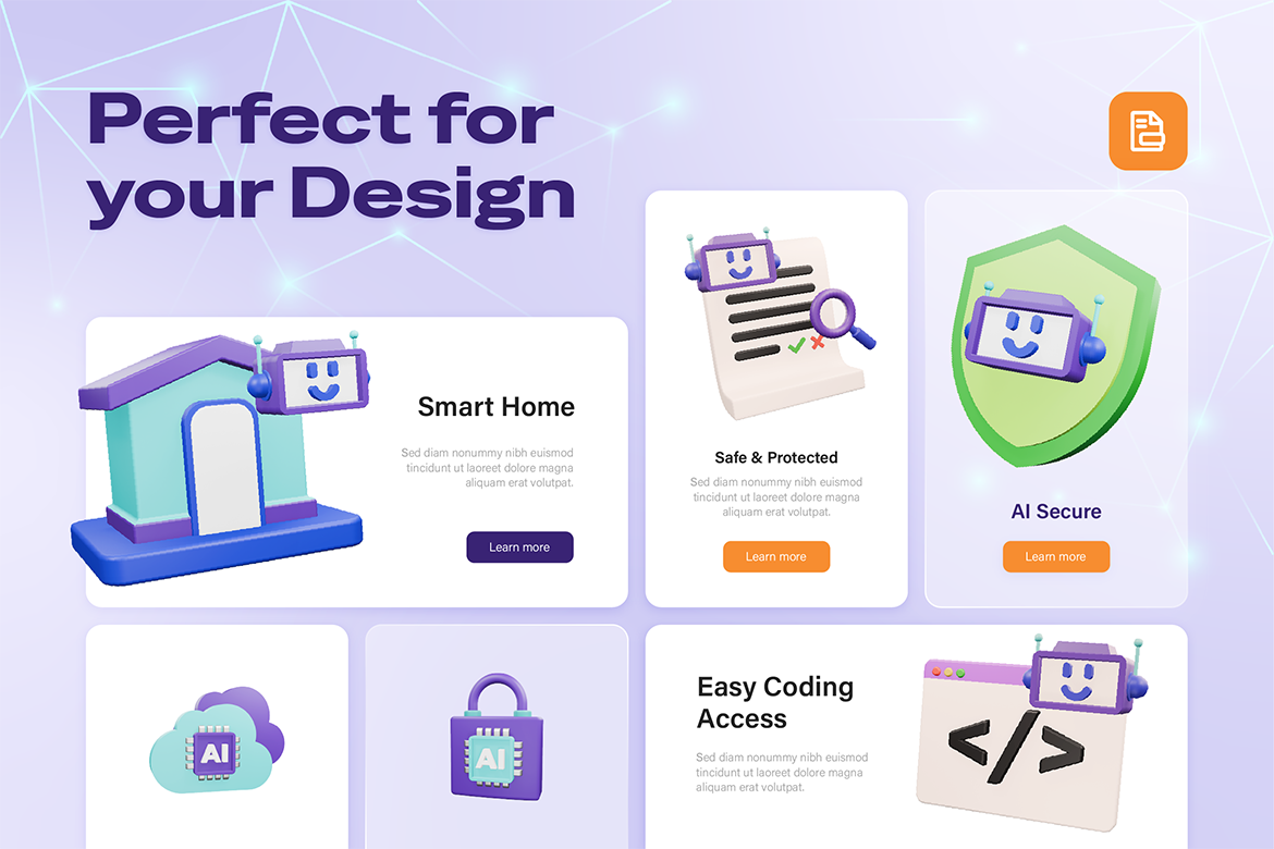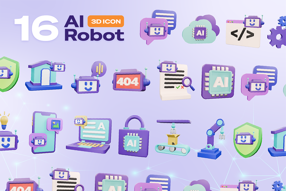 A collection of 16 modern 3D icons designed for tech and AI-related projects. Perfect for websites, apps, presentations, and social media. Fully editable and available in high resolution (4000×4000 px).