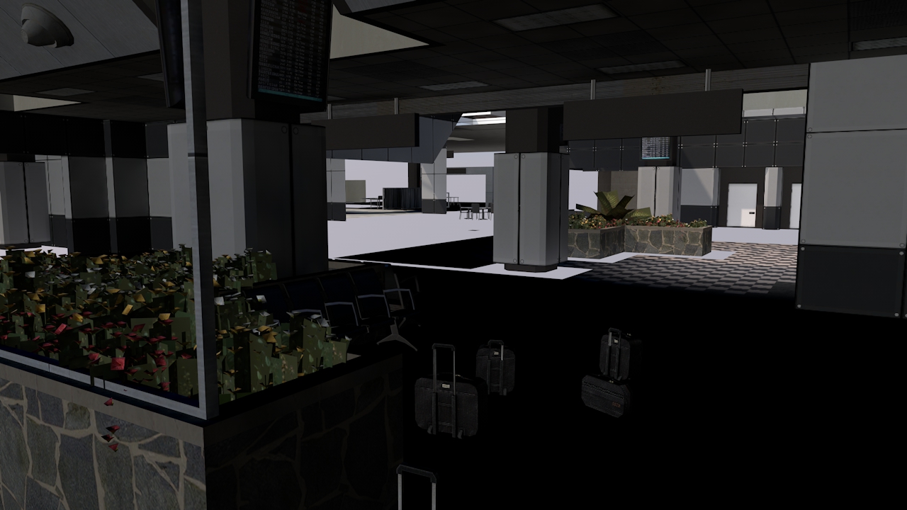 Completed scene Airport Terminal Project included +700 texture/materials, 2 airplanes, 1 cop car, 1 oil tanker car, 1 big terminal airport with all included ( bars, tv led,bathroom,waiting room,check-in points and more. The project has Points 405497, Polygons 463997