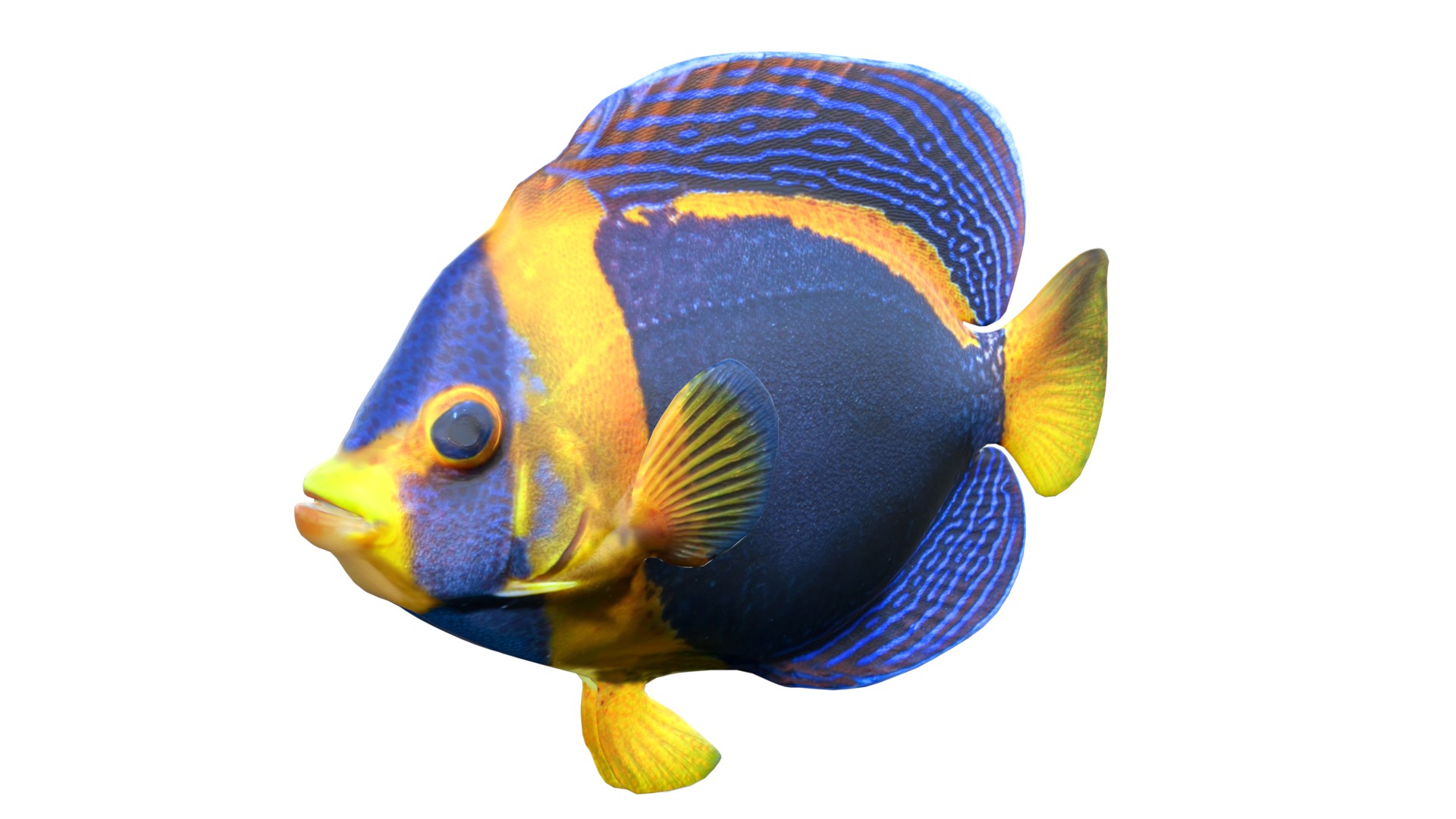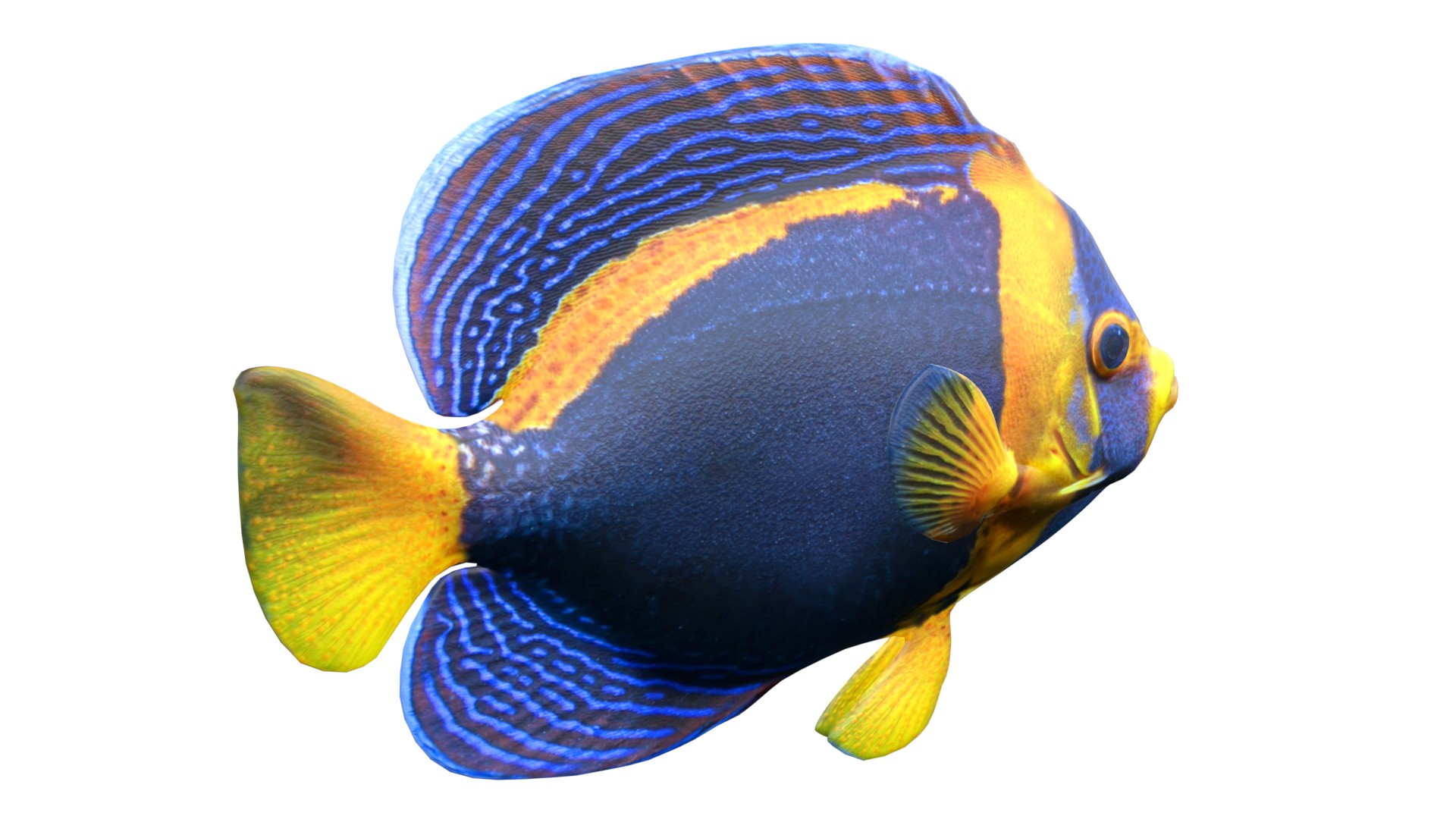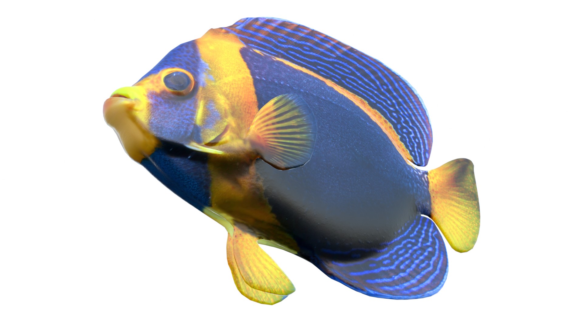 INFO: - Asymmetrical fish 3d model - Textures embedded in blender too - Ready to render in Blender with Cycles/EEVEE - Made in Cinema 4d - Auto UV and Auto topolgy done in cinema 4d - Cinema 4d and blender 3d files are textured linked - 4k Textures, Only Diffuse map - Bump and SSS also used in blender - UV mapped - Best for publication, visualition etc.
