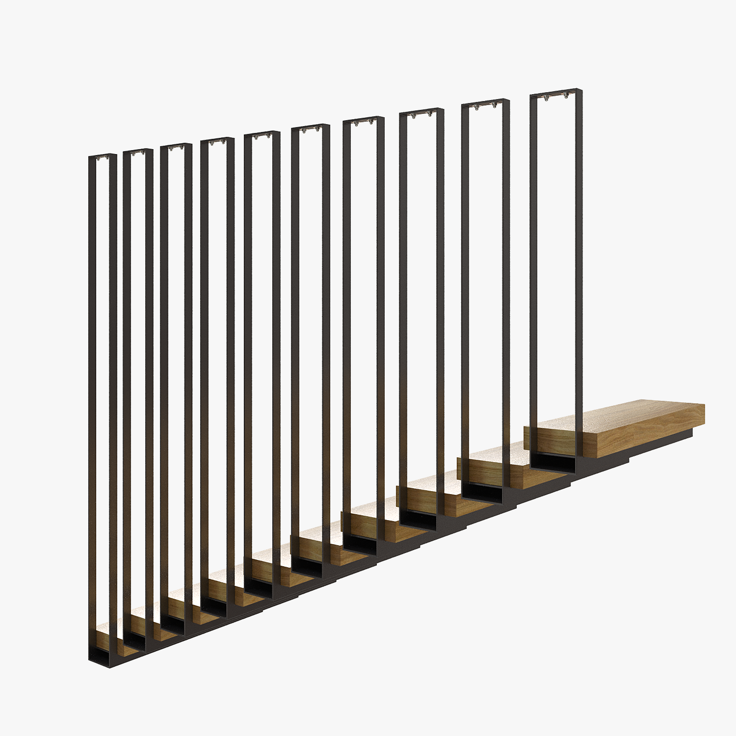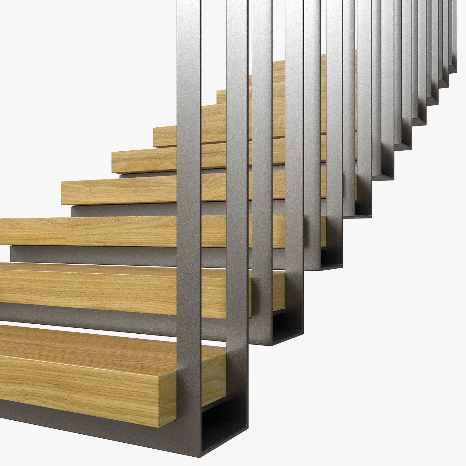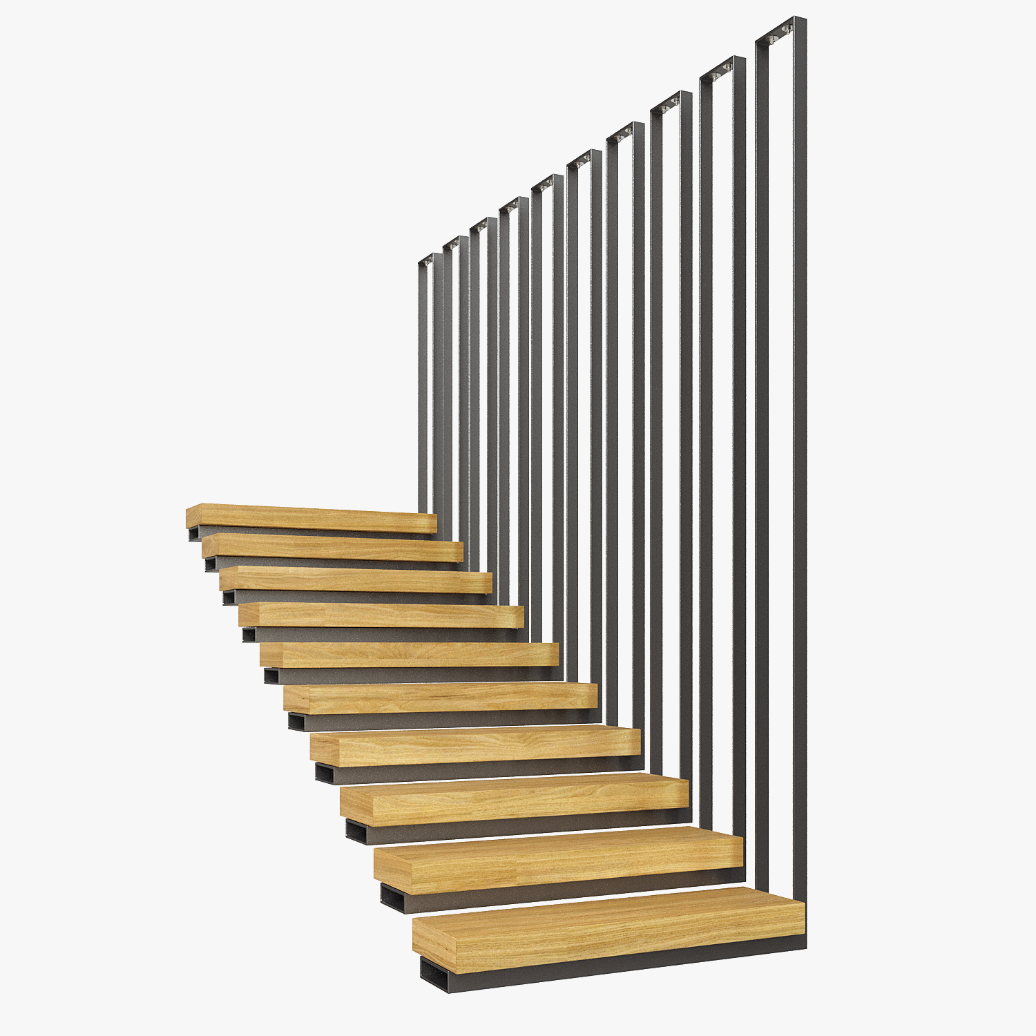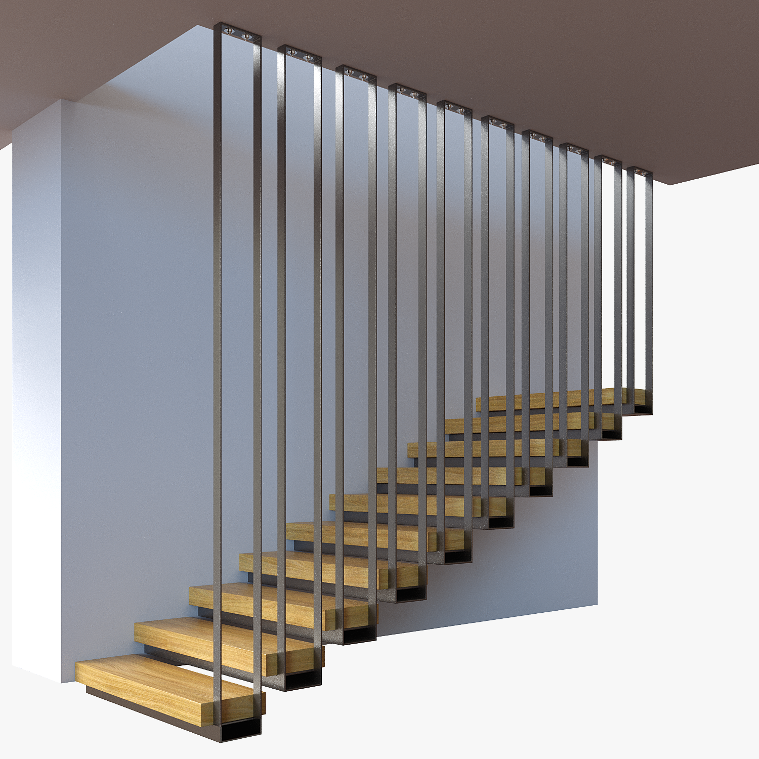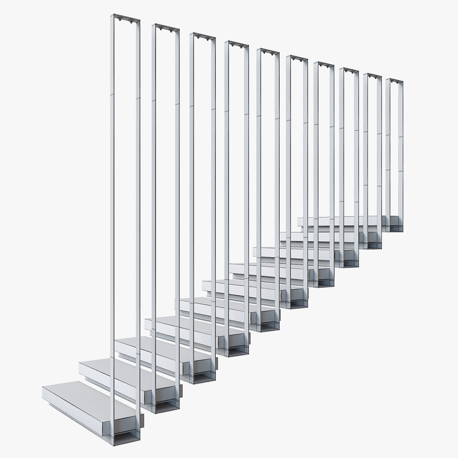 Carefully 3D model of Architectural Suspended Staircase. Suitable for close-up shooting, interior rendering.