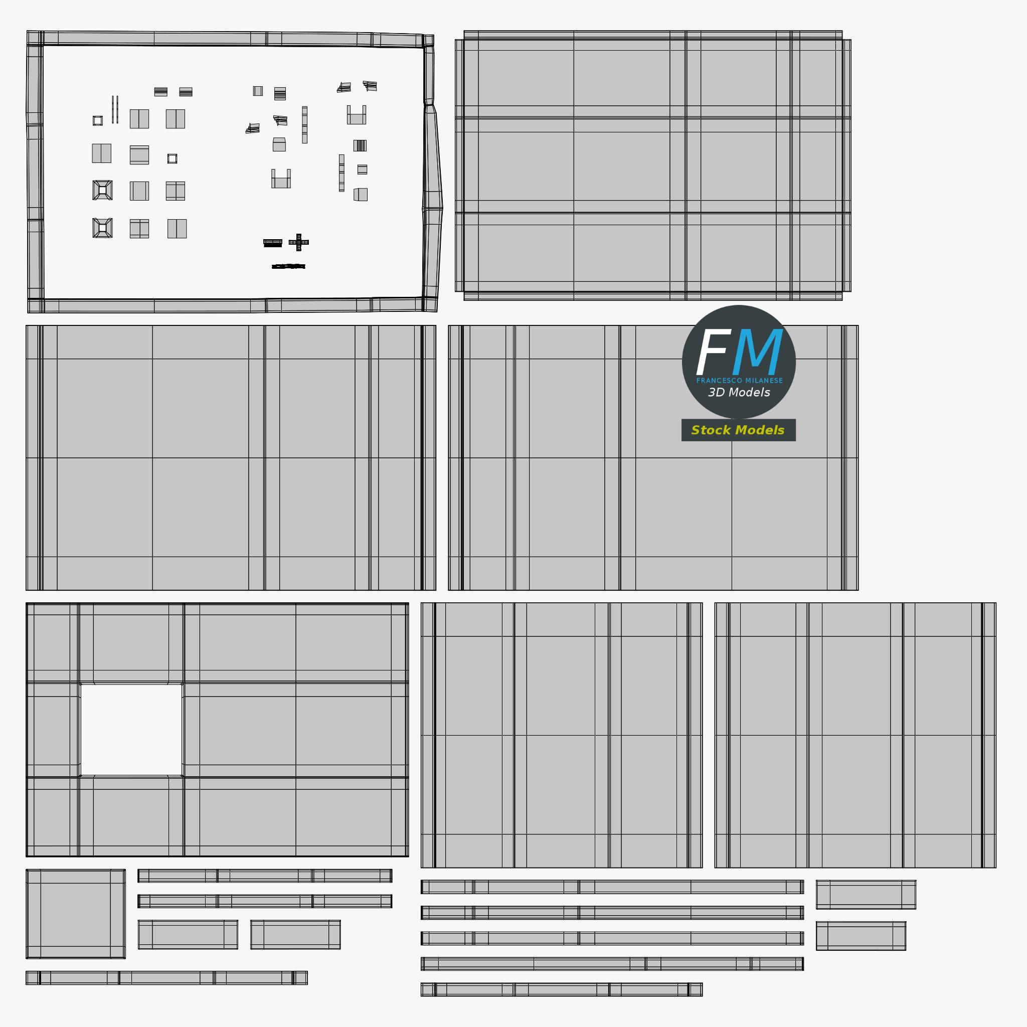 Easily customizable: UV unwrapped geometries, so you can create new Textures (or modify the existing ones) using the UV Layout maps provided in the package (as png with alpha).