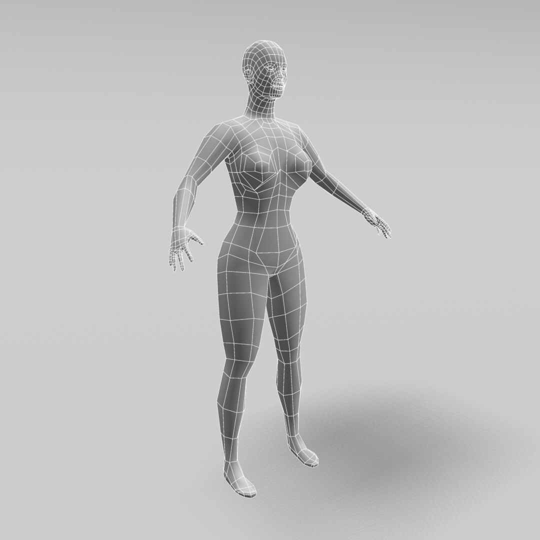 base mesh female,female,human,3d model,Made with Maya 2013. you can modify and texture it to make custom low poly characters. rendered with Mental Ray. Poly count : 1538. Format:(fbx),(OBJ),(maya.mb).