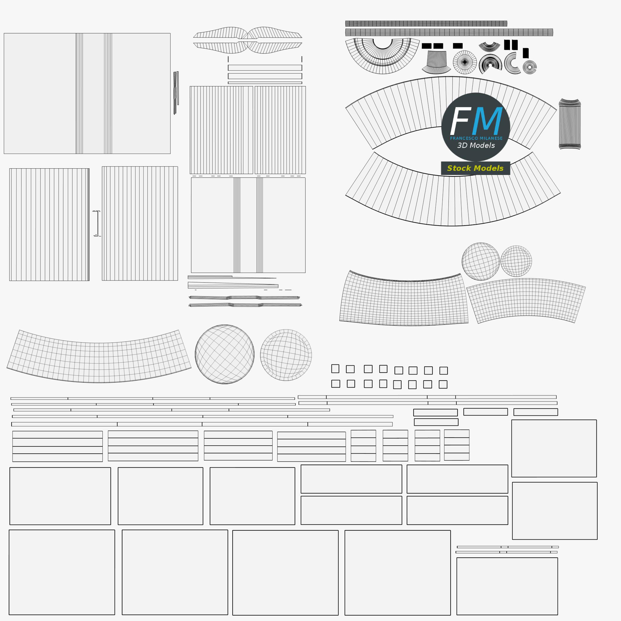 Easily customizable: UV unwrapped geometries, so you can create new Textures (or modify the existing ones) using the UV Layout maps provided in the package (as png with alpha).