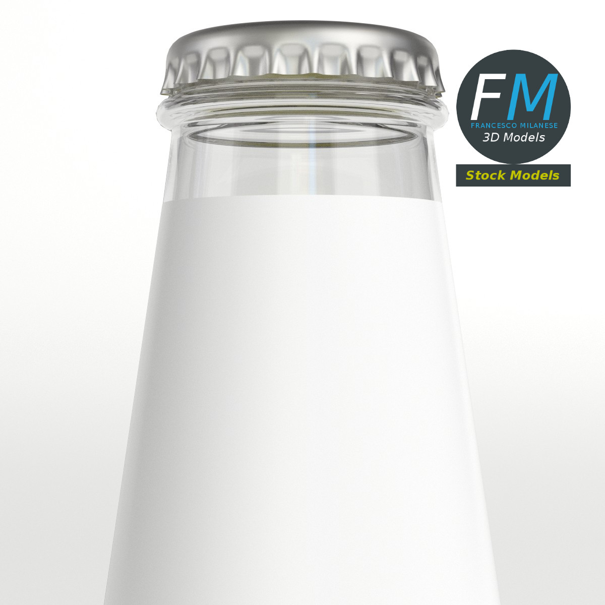 Beer bottle 3D Model. 4 objects (bottle, crown cork, labels, liquid), each one with its own non overlapping UV Layout map, Material and PBR Textures set - perfect for a mock-up. Production-ready 3D Model, with PBR materials, textures, non overlapping UV Layout map provided in the package.