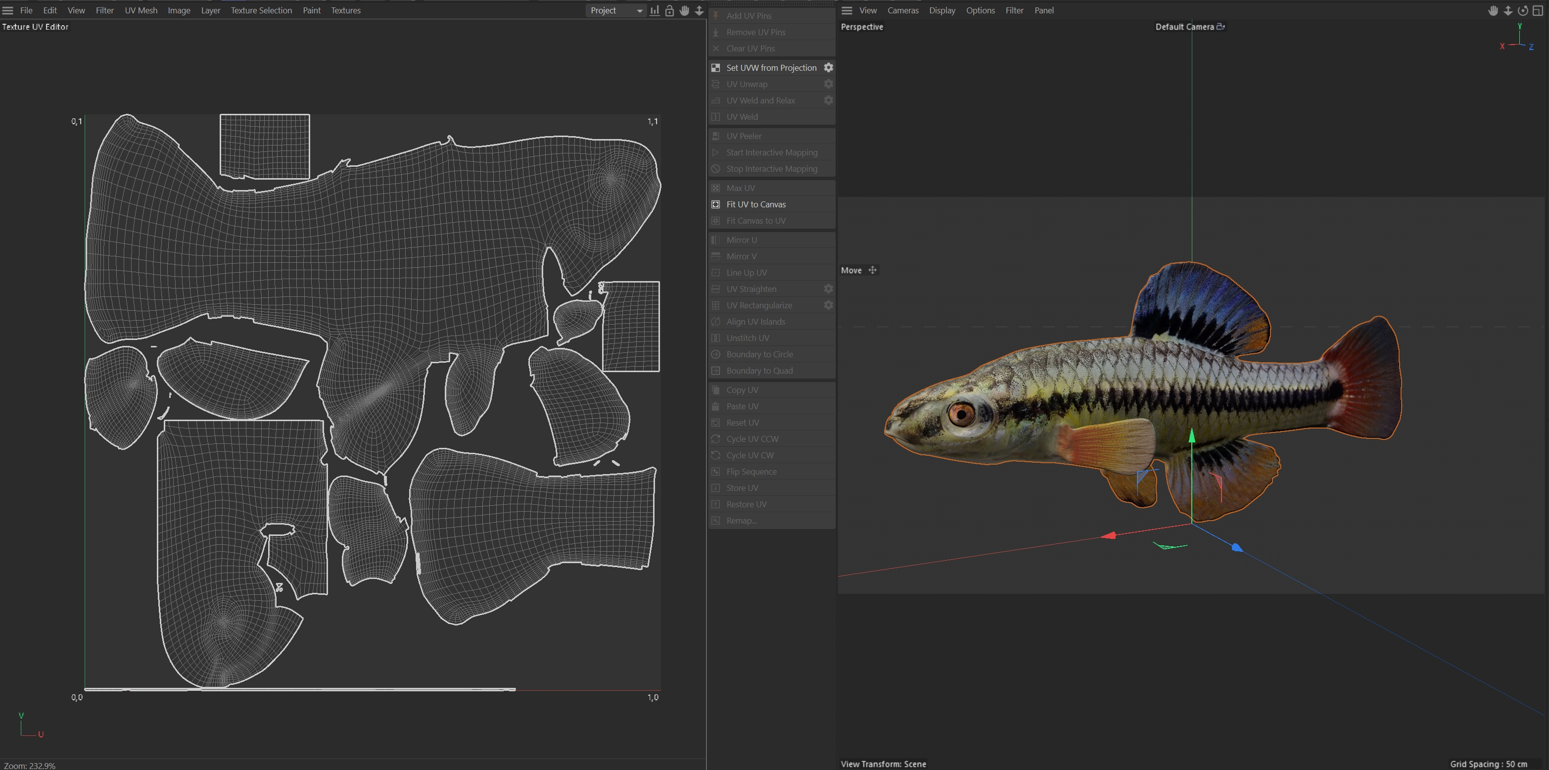 INFO: - Asymmetrical fish 3d model - Textures embedded in blender too - Ready to render in Blender with Cycles/EEVEE - Made in Cinema 4d - Auto UV and Auto topolgy done in cinema 4d - Cinema 4d and blender 3d files are textured linked - 4k Textures, Only Diffuse map - Bump and SSS also used in blender - UV mapped - Best for publication, visualition etc.