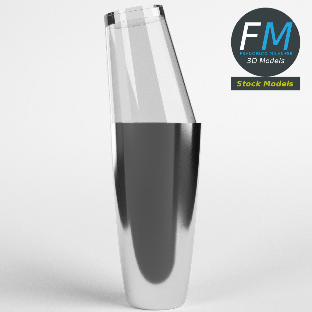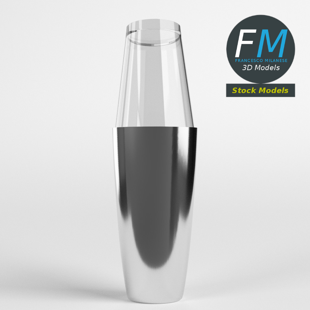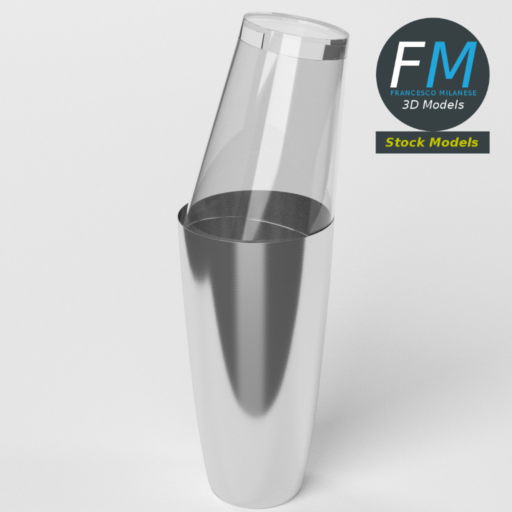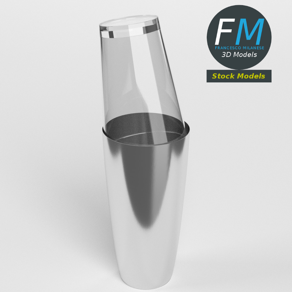 Boston shaker 3D Model. 2 individual objects (tin, glass), each one with its own non overlapping UV Layout map, Material and PBR Textures set. Production-ready 3D Model, with PBR materials, textures, non overlapping UV Layout map provided in the package.