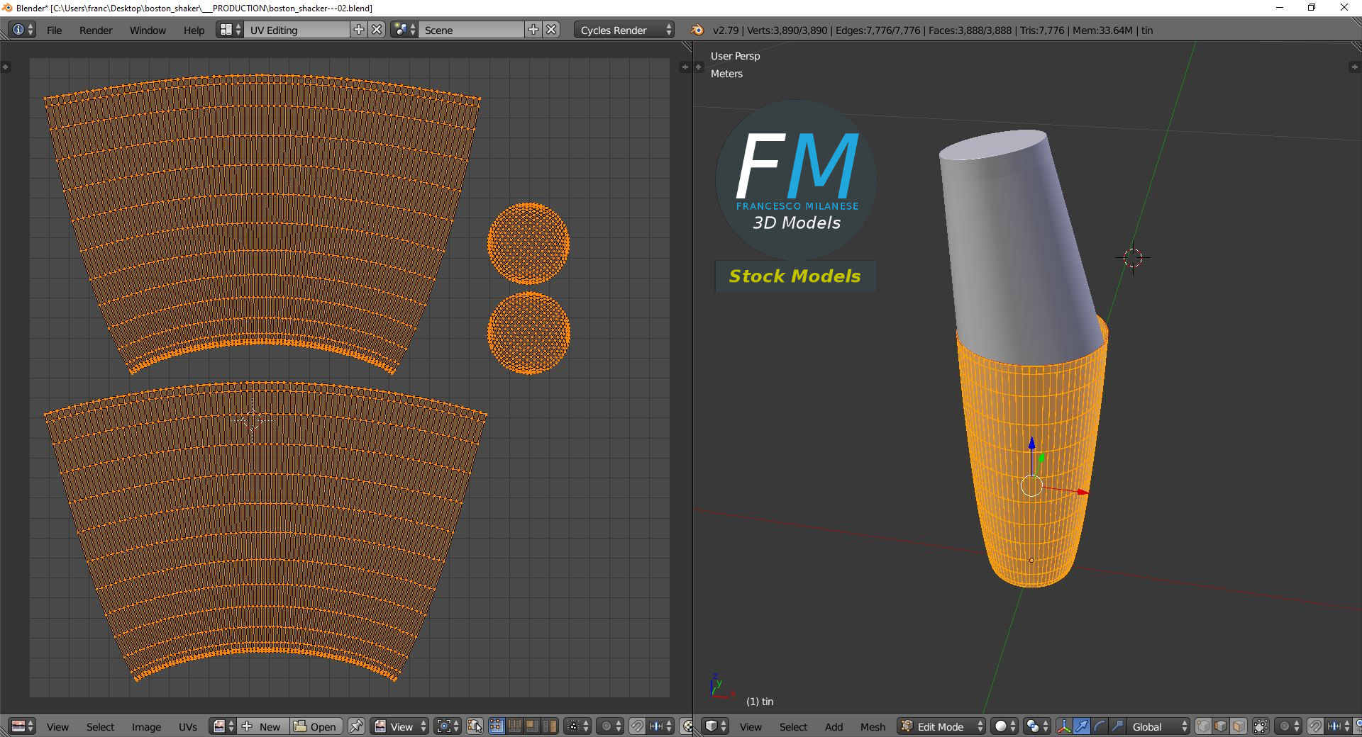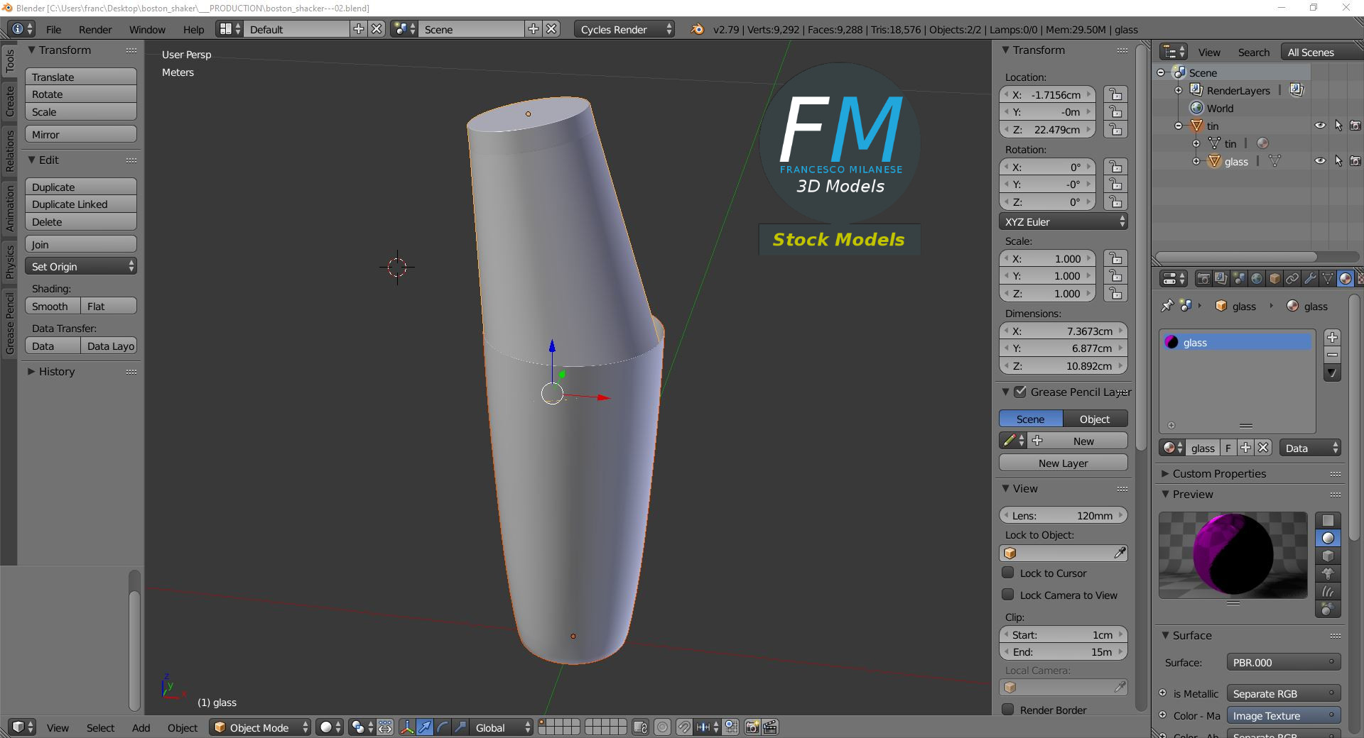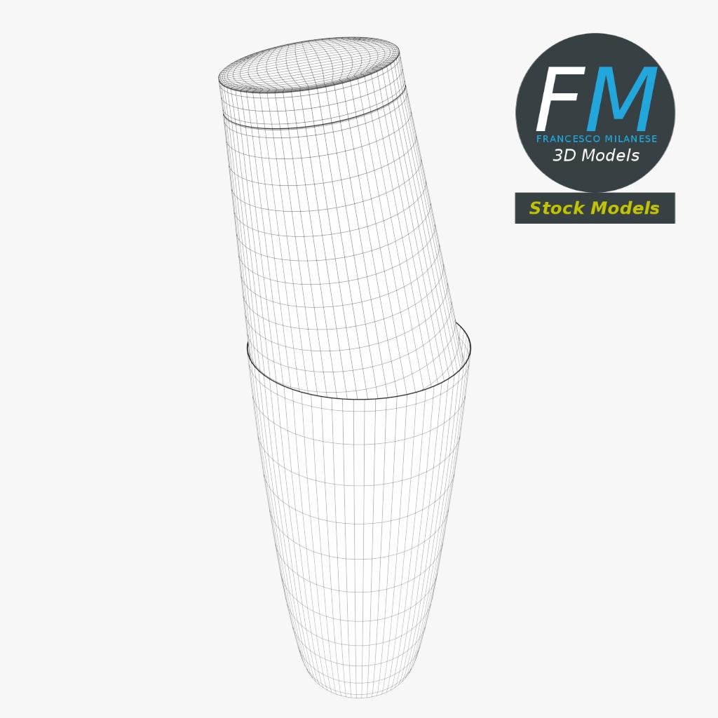 Boston shaker 3D Model. 2 individual objects (tin, glass), each one with its own non overlapping UV Layout map, Material and PBR Textures set. Production-ready 3D Model, with PBR materials, textures, non overlapping UV Layout map provided in the package.