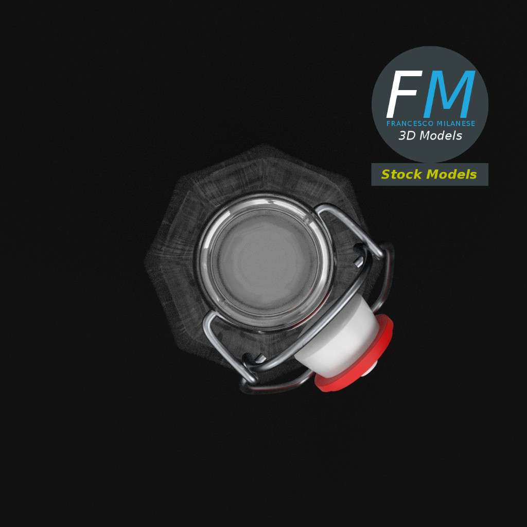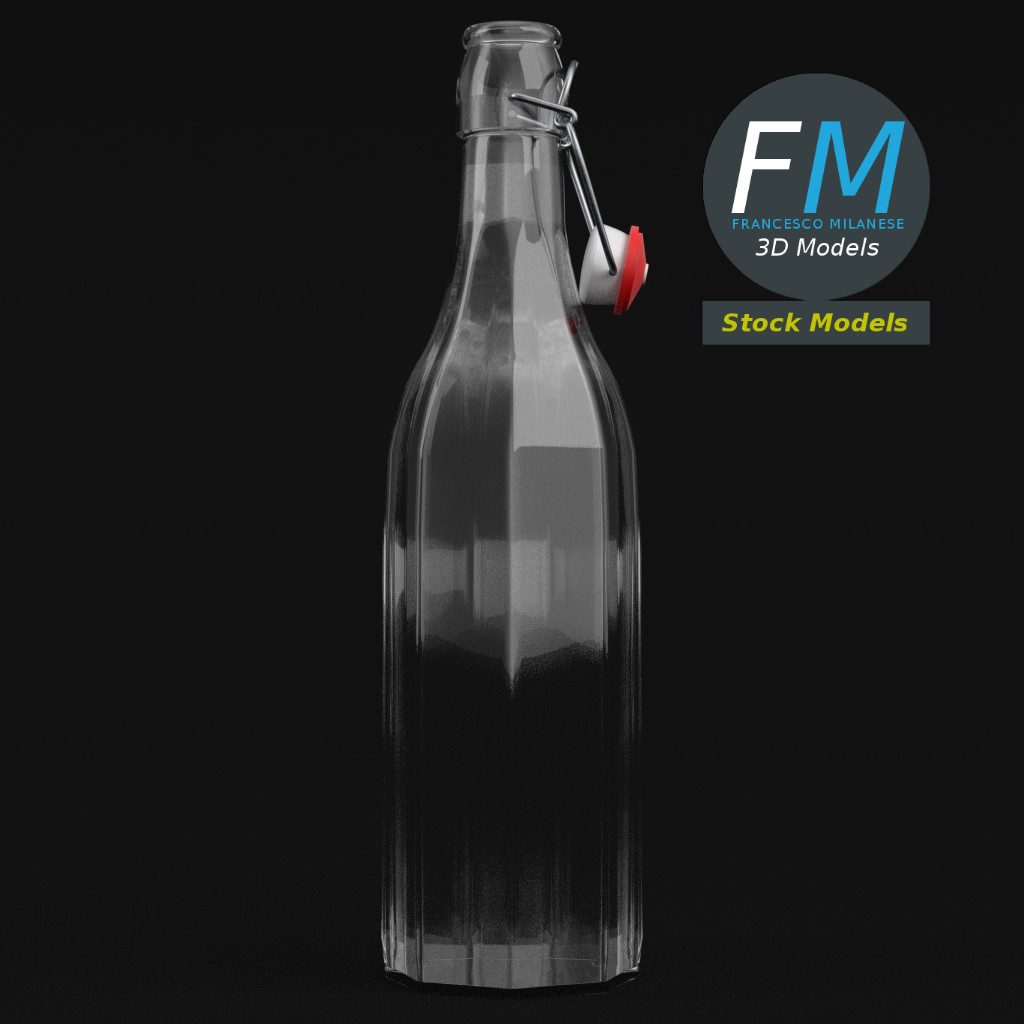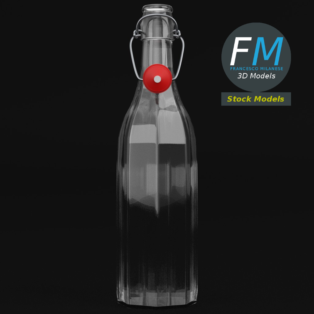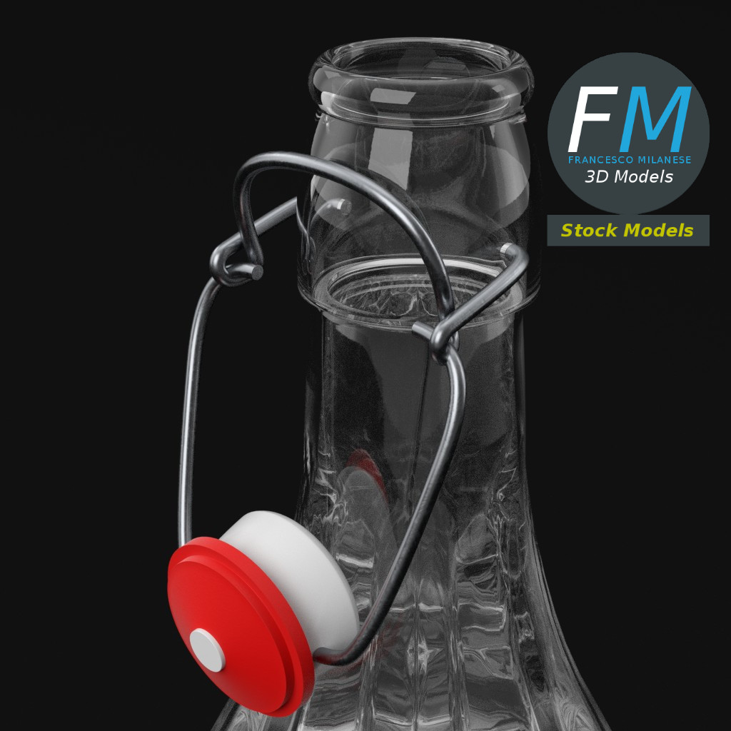 Bottle with bracket closure 3D Model, open version (take a look at my portfolio for the closed version). 3 individual objects (liquid, bracket closure, glass), each one with its own non overlapping UV Layout map, Material and PBR Textures set. Production-ready 3D Model, with PBR materials, textures, non overlapping UV Layout map provided in the package.