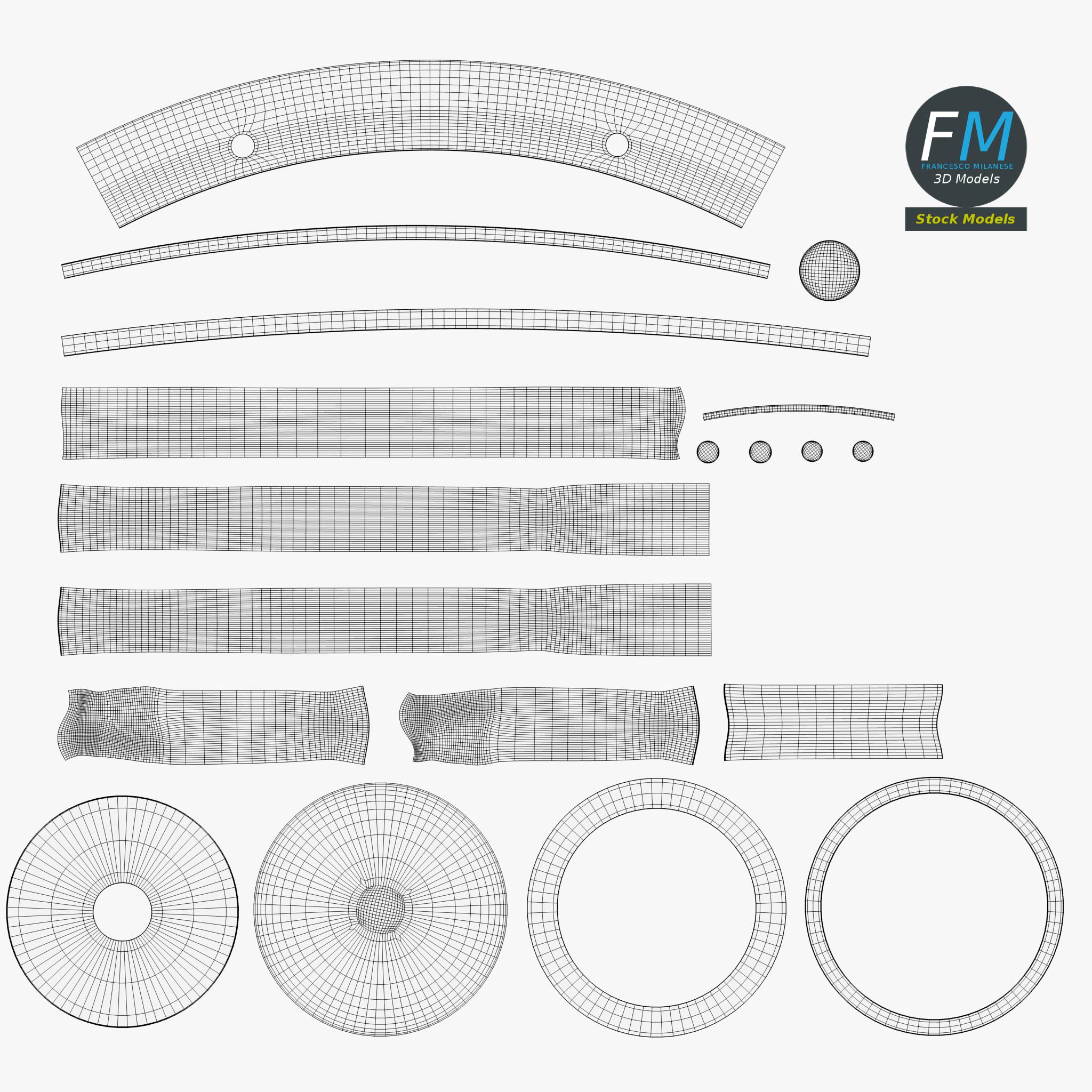 Easily customizable: UV unwrapped geometries, so you can create new Textures (or modify the existing ones) using the UV Layout maps provided in the package (as png with alpha).
