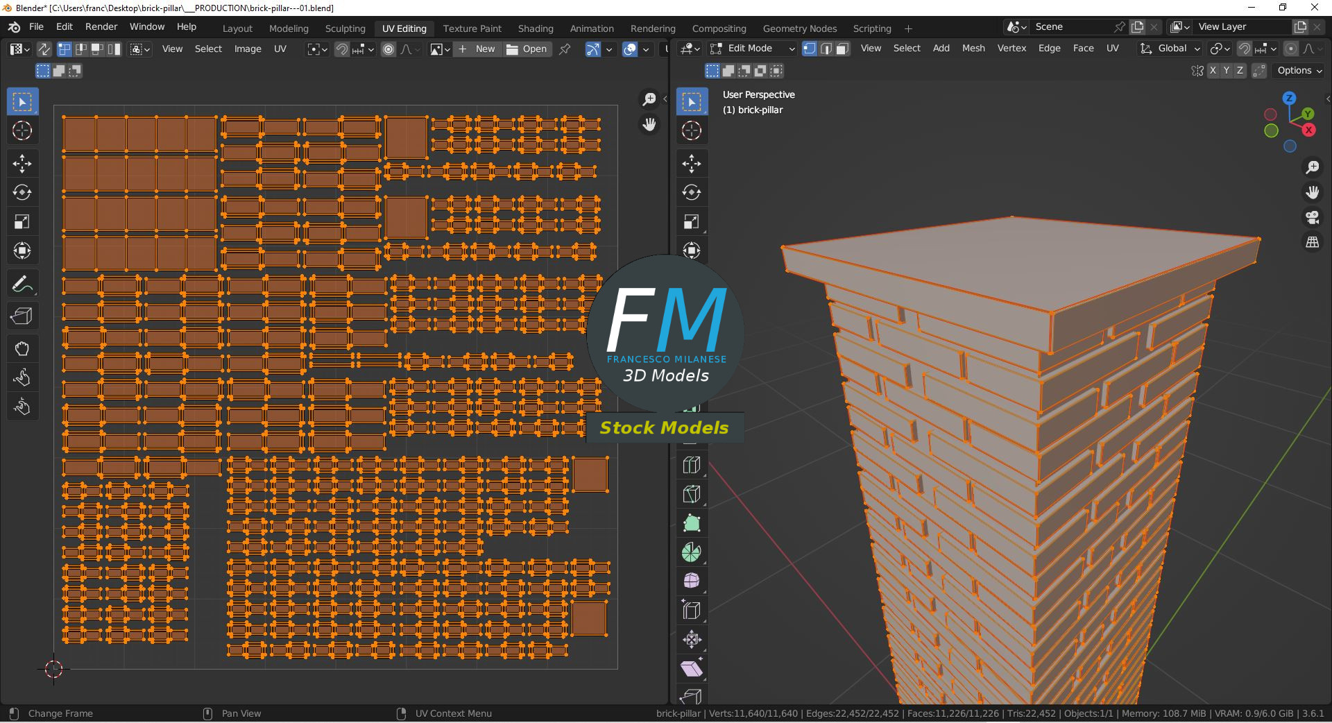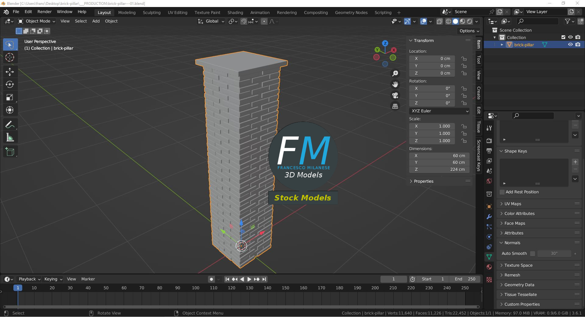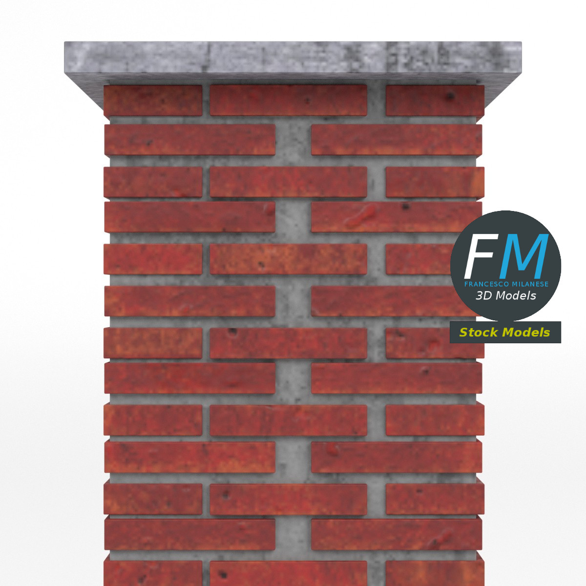 Brick pillar 3D Model. Production-ready 3D Model, with PBR materials, textures, non overlapping UV Layout map provided in the package.