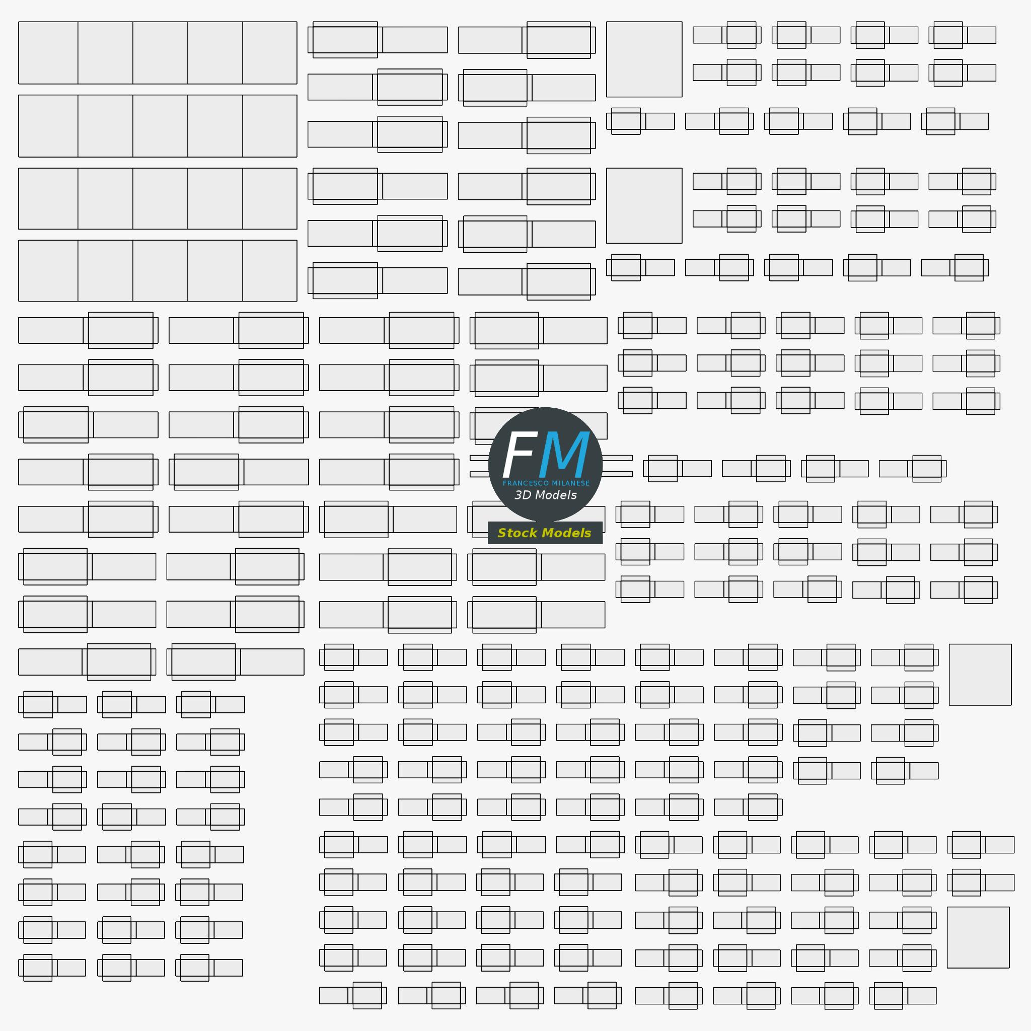 Easily customizable: UV unwrapped geometries; UV Layout maps provided in the package as png with alpha images.