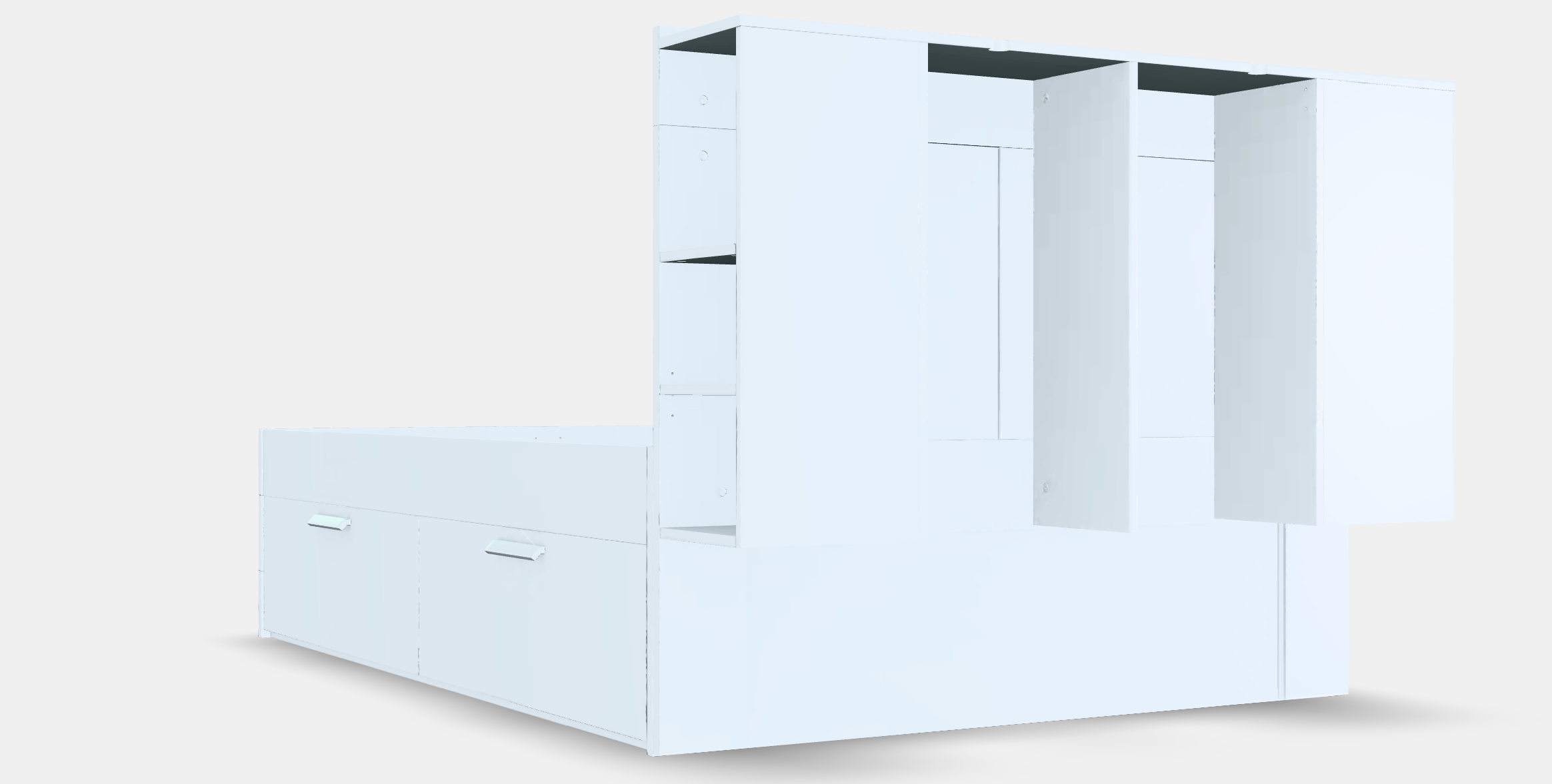The BRIMNES Bed frame w storage and headboard 3 in .3ds, .obj, .gltf, .glb, .usdz, .stl, .fbx formats model brings high fidelity realism to your scenes, featuring fully applied textures and optimized polygons. Created with a focus on rendering efficiency, this model comes with everything you need to get started right away—no cleanup required, just import, and go. - Complete with detailed PBR textures for lifelike visuals. - Comes pre-grouped and organized for intuitive scene management. - No third-party plugins necessary, ready for use in your favorite render engines. - Formats: All formats included.