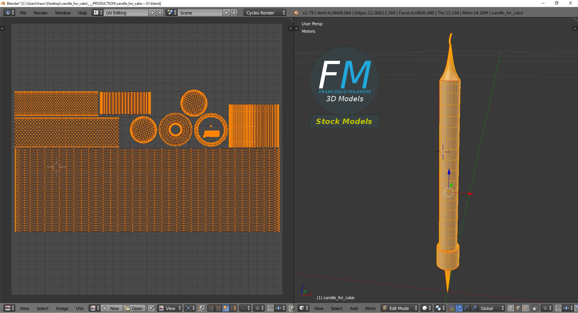 Candle for cake 3D Model. Production-ready 3D Model, with PBR materials, textures, non overlapping UV Layout map provided in the package.