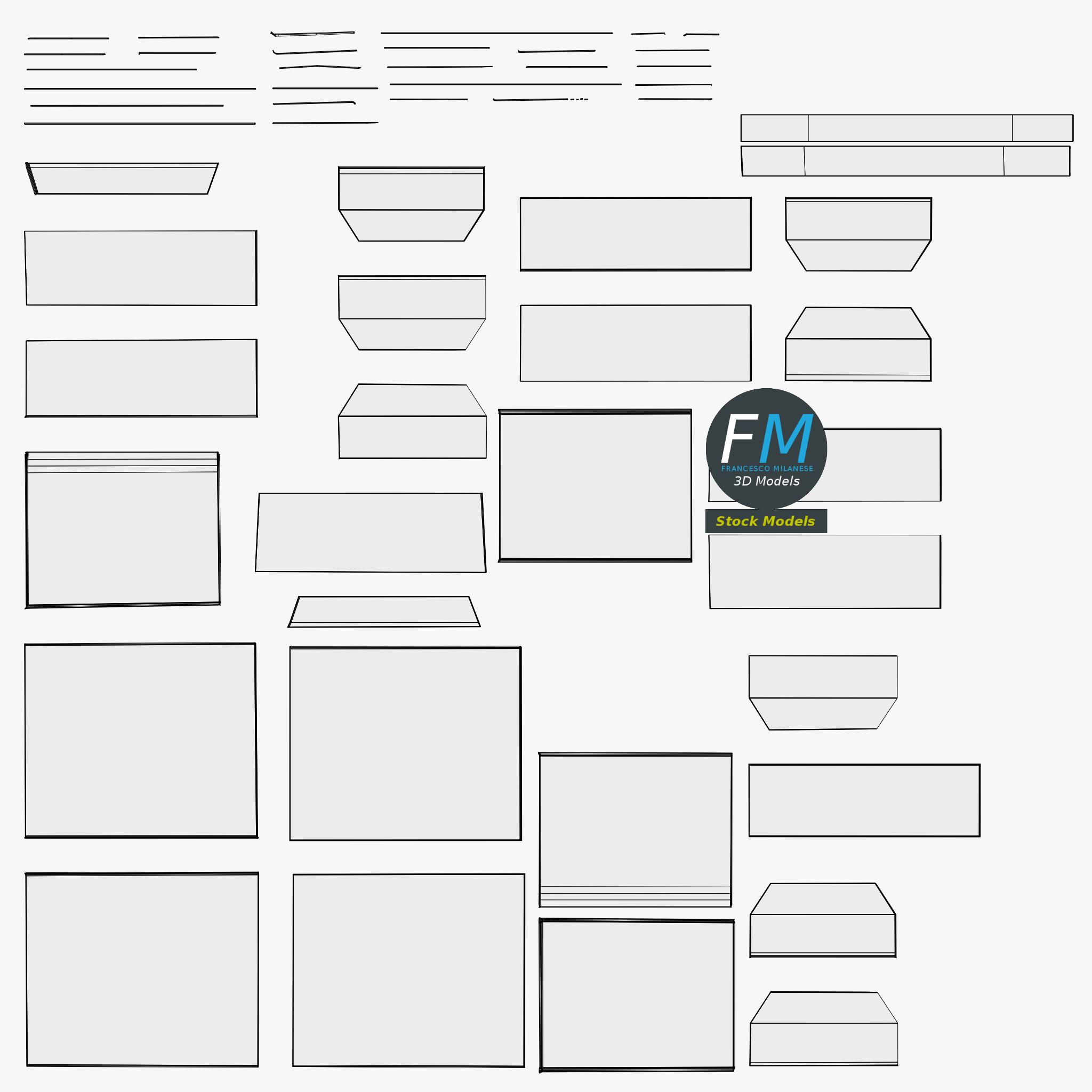 Easily customizable: UV unwrapped geometries; UV Layout maps provided in the package as png with alpha images.