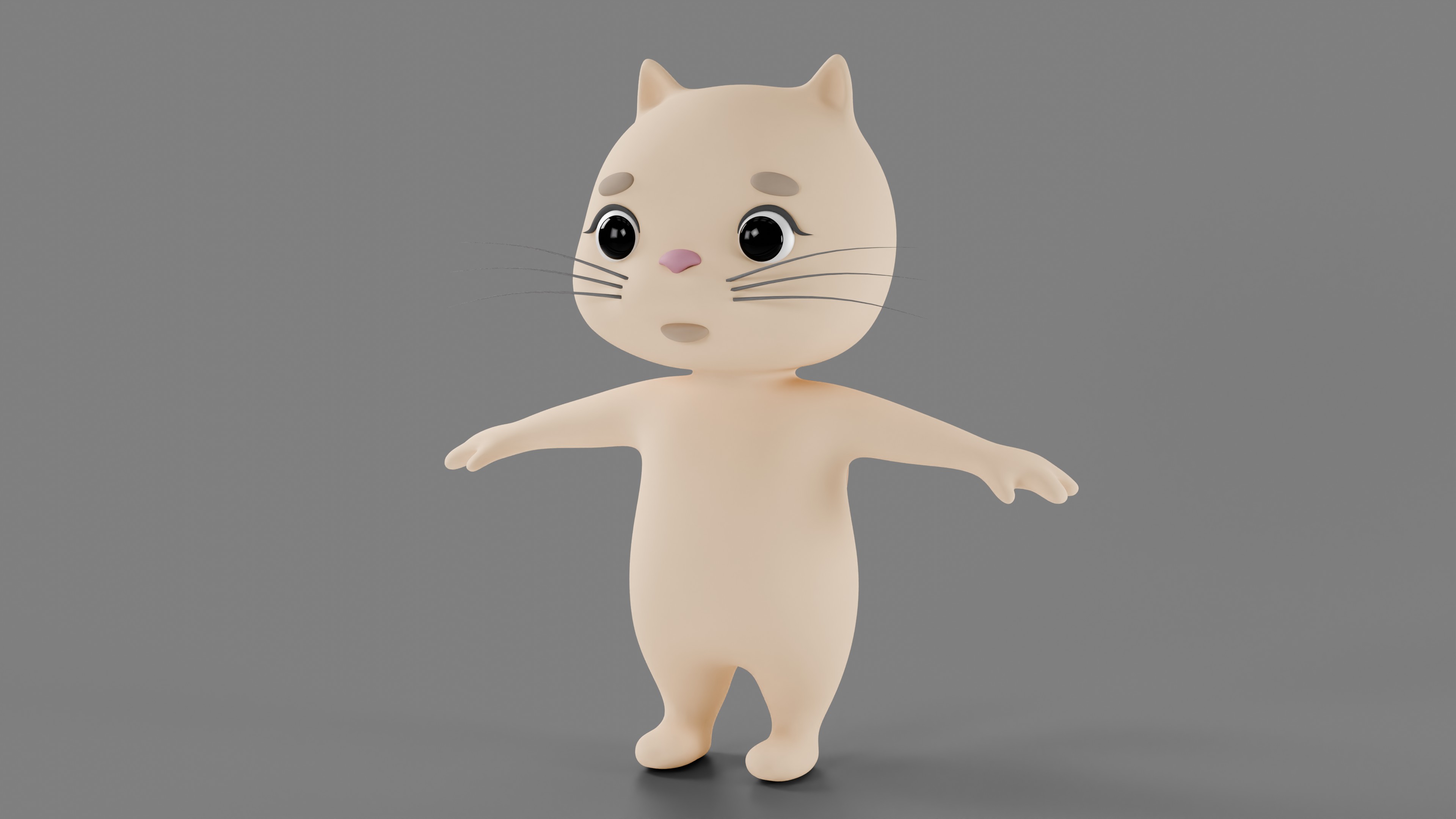 - High-quality stylized 3D model of a cute cartoon cat.