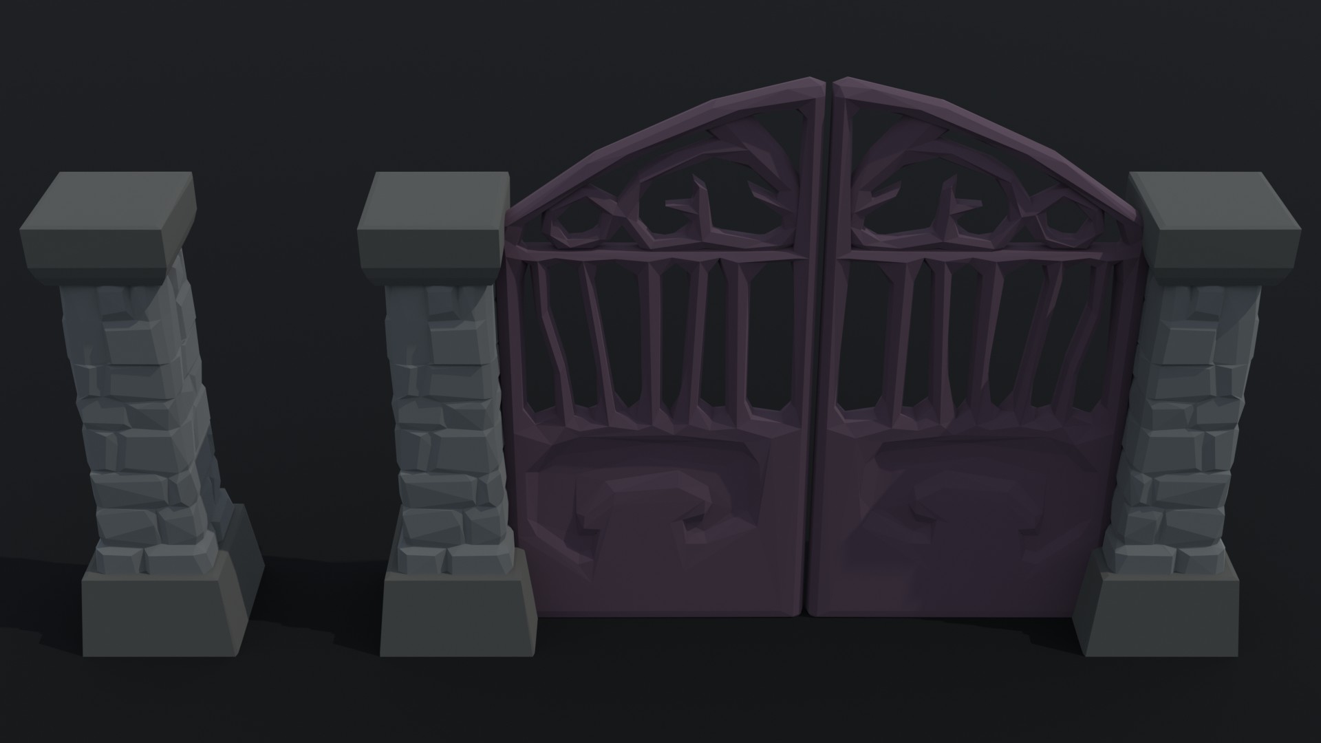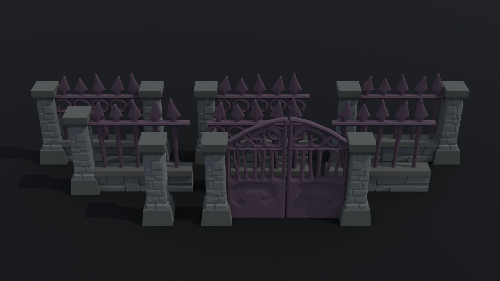 This is cartoon fantasy cemetery fence kit Polygonal Style(8 object)