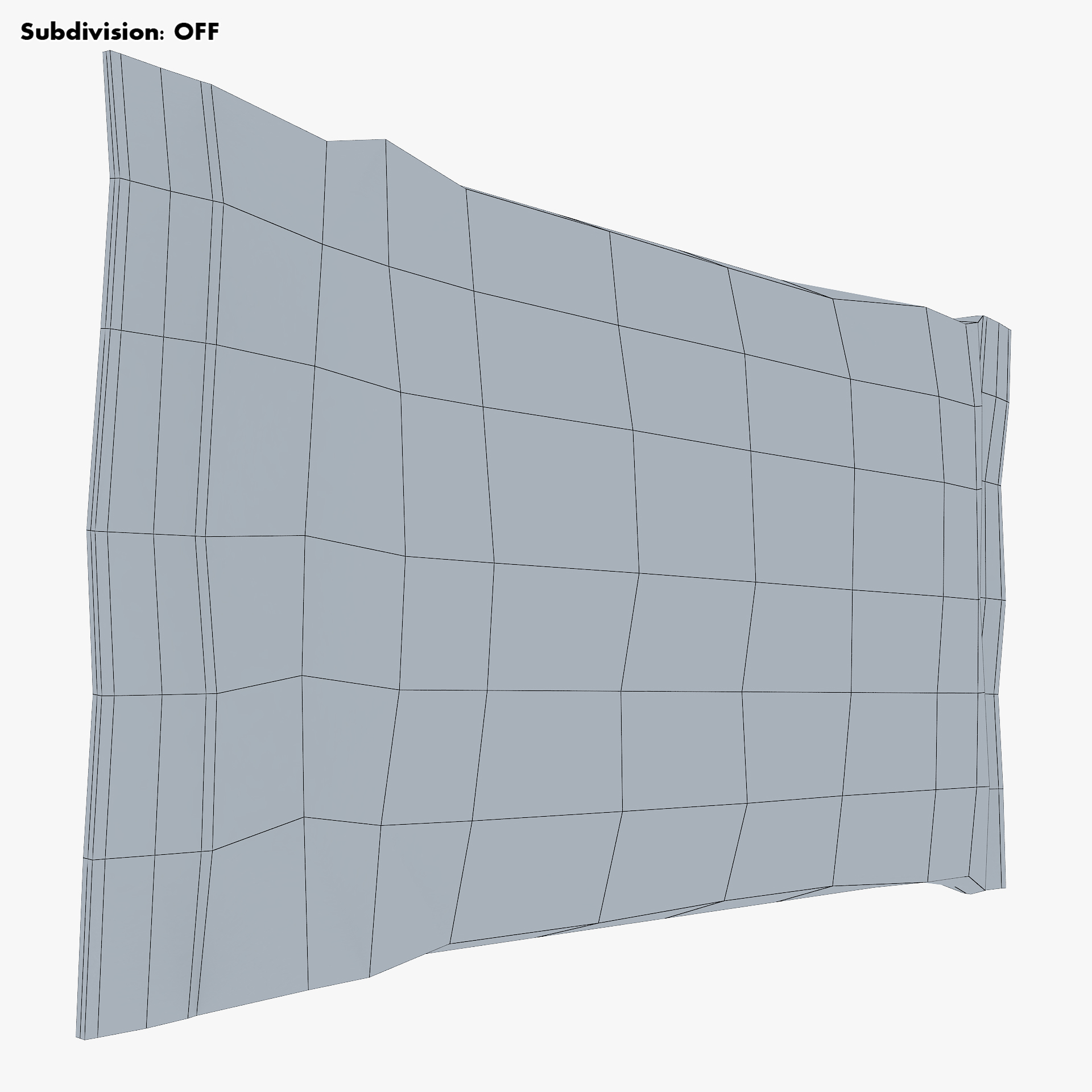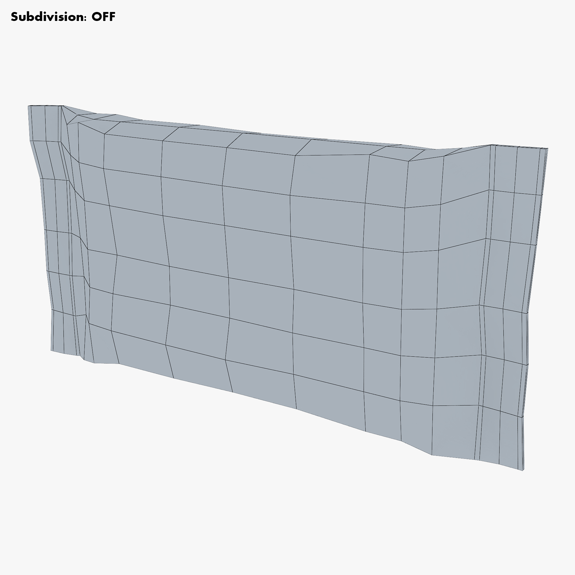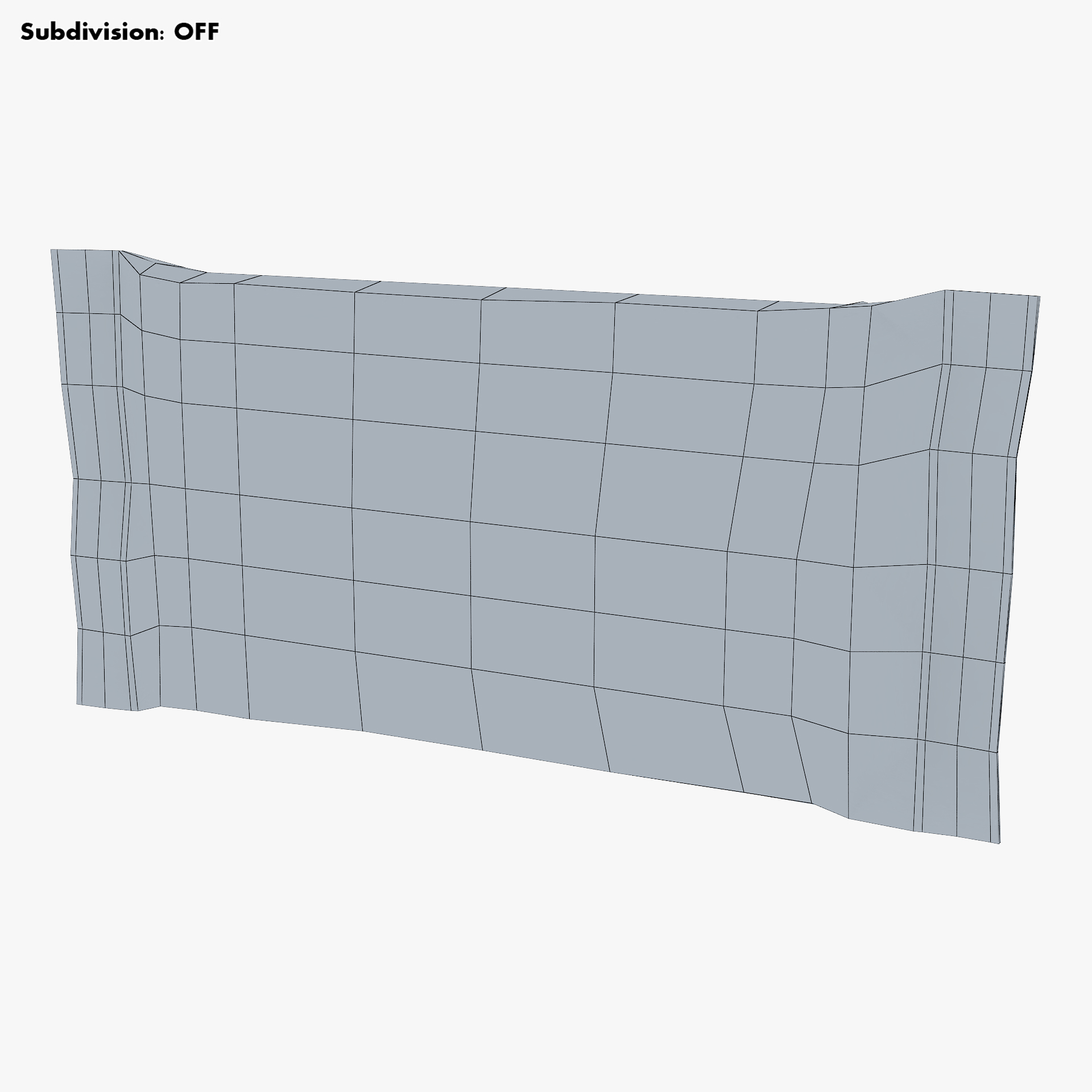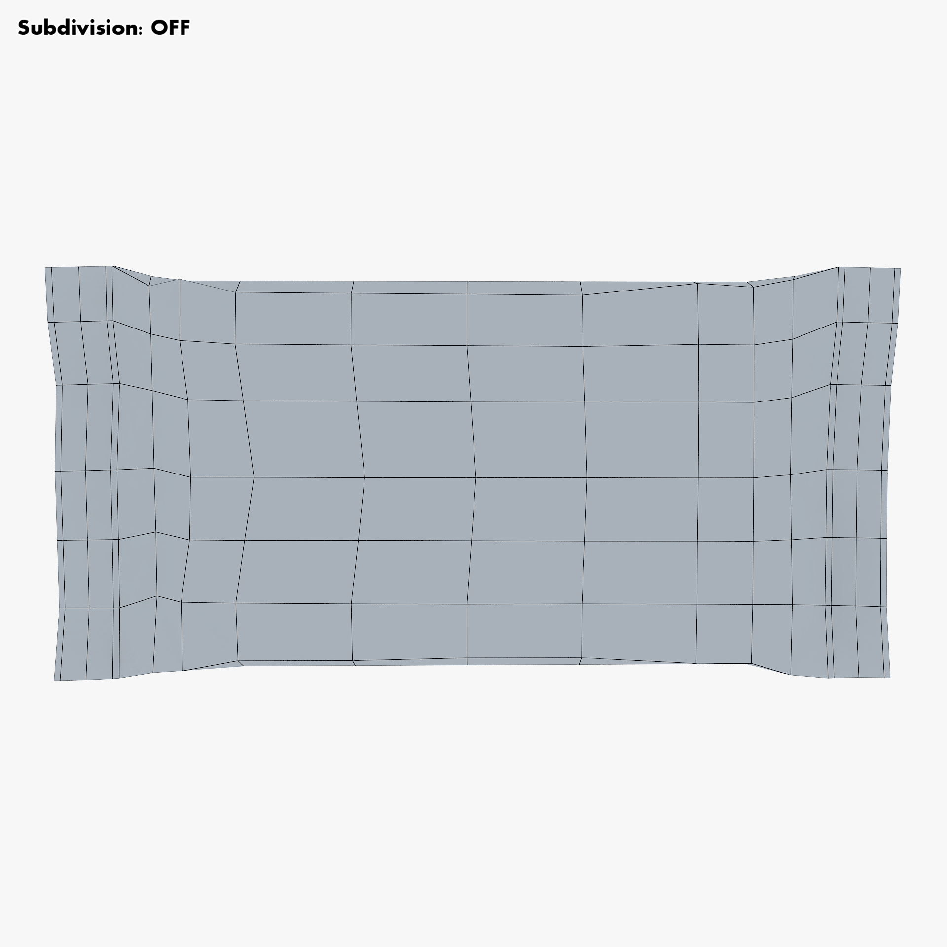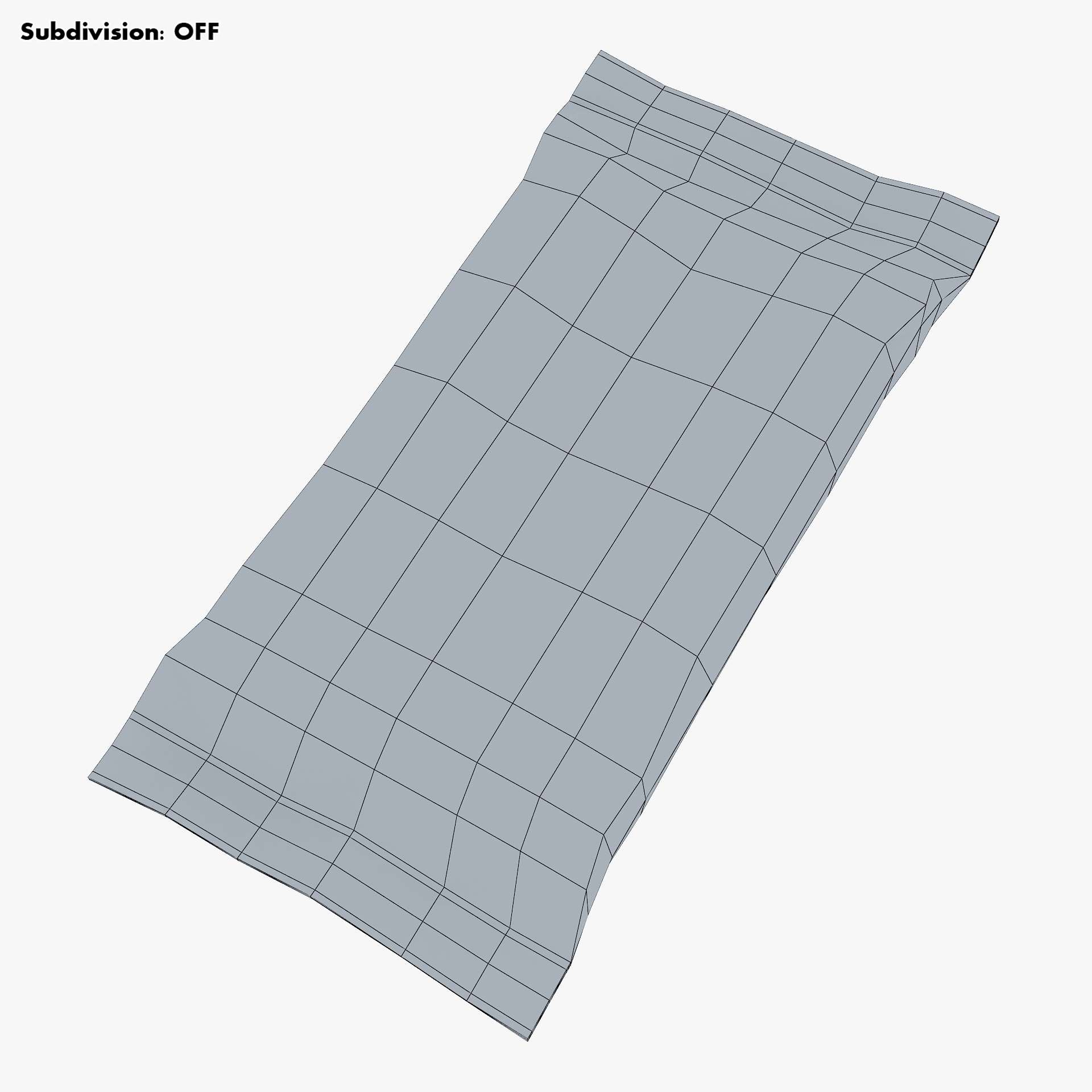 - Subdivision OFF: – Polygons: 312 – Triangles: 624 – Edges: 624 – Vertices: 314