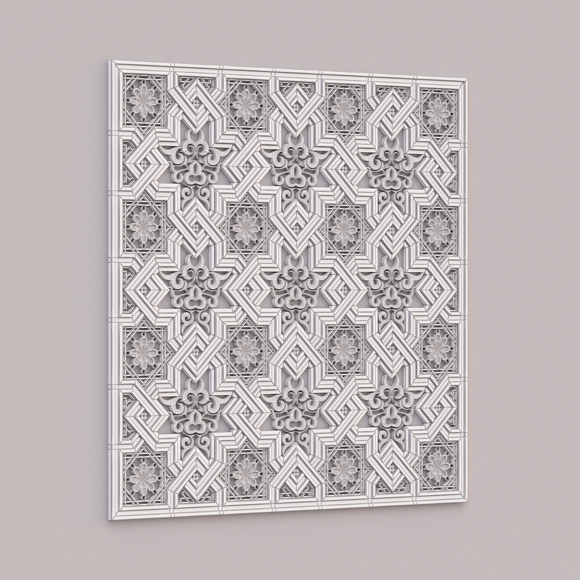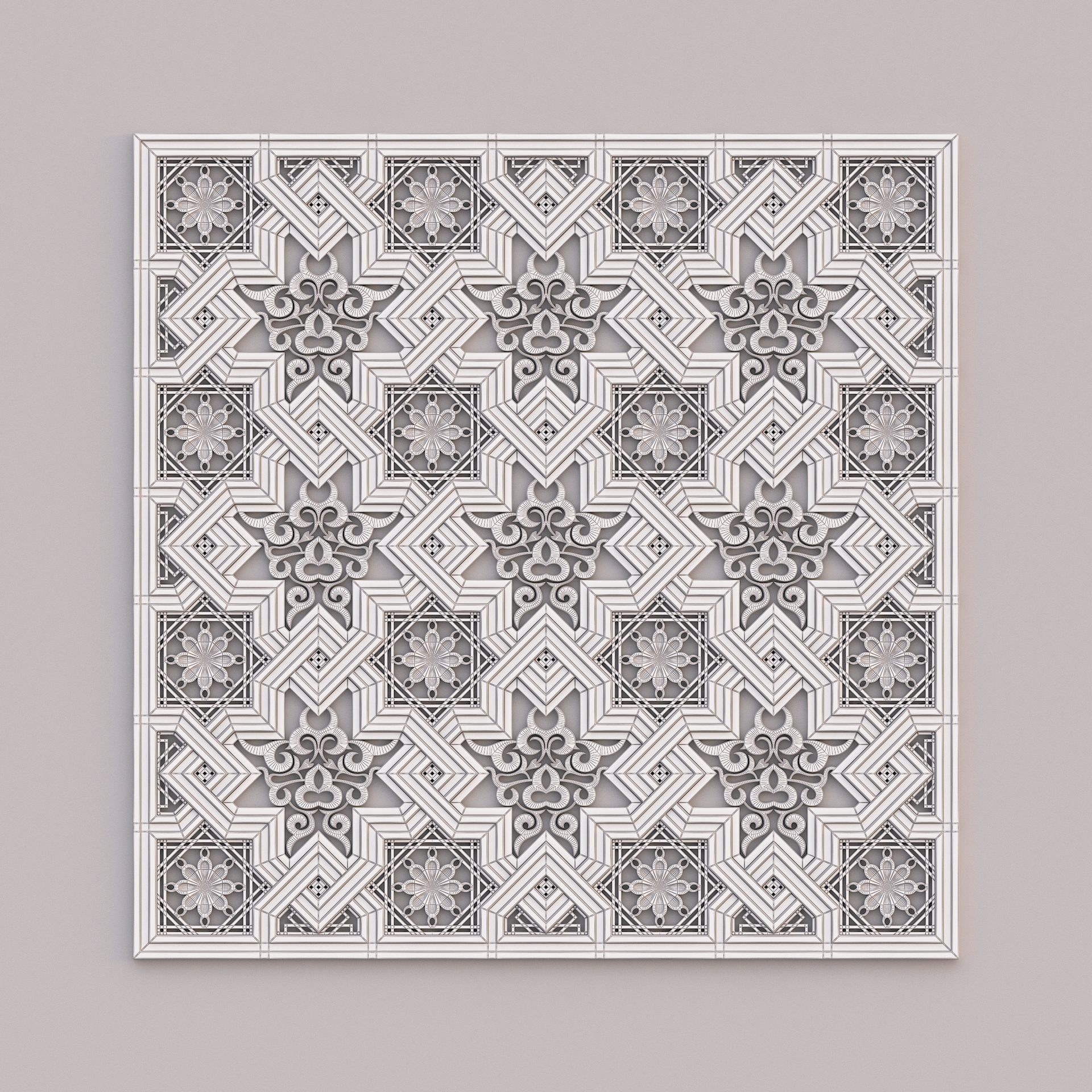 Classic Pattern 008 3ds max modeling 3ds max 2024 Vray 6 Format: FBX, OBJ, STL Polygons: 243 094 Vertices: 266 022 Height: 103 cm Length: 1.5 cm Width: 103 cm Texture: Dirt_Texture – PNG 2200×2200, seamless