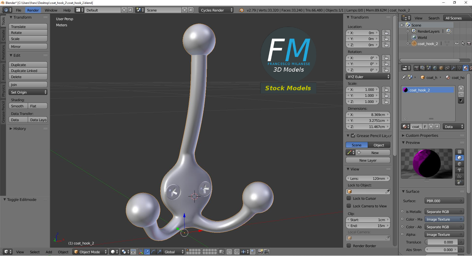 Sketchfab 3D preview: https://sketchfab.com/3d-models/coat-hook-2-2009e5f784a747bfa52ce5014c5e3530