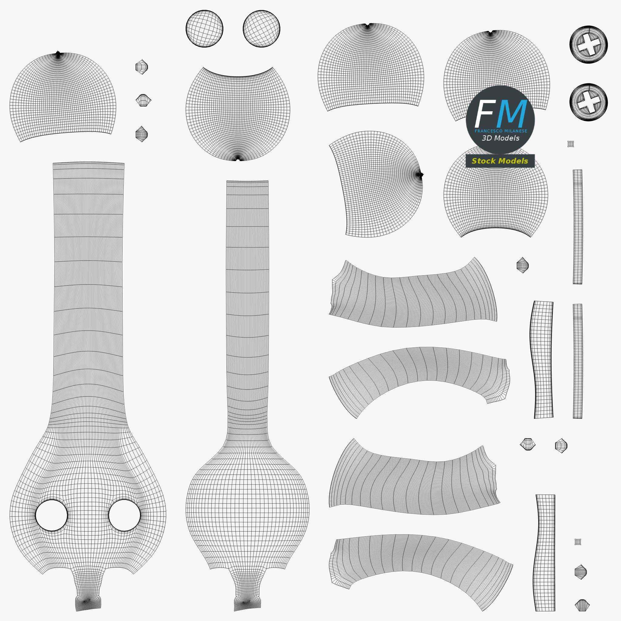 Easily customizable: UV unwrapped geometries, so you can create new Textures (or modify the existing ones) using the UV Layout maps provided in the package (as png with alpha).