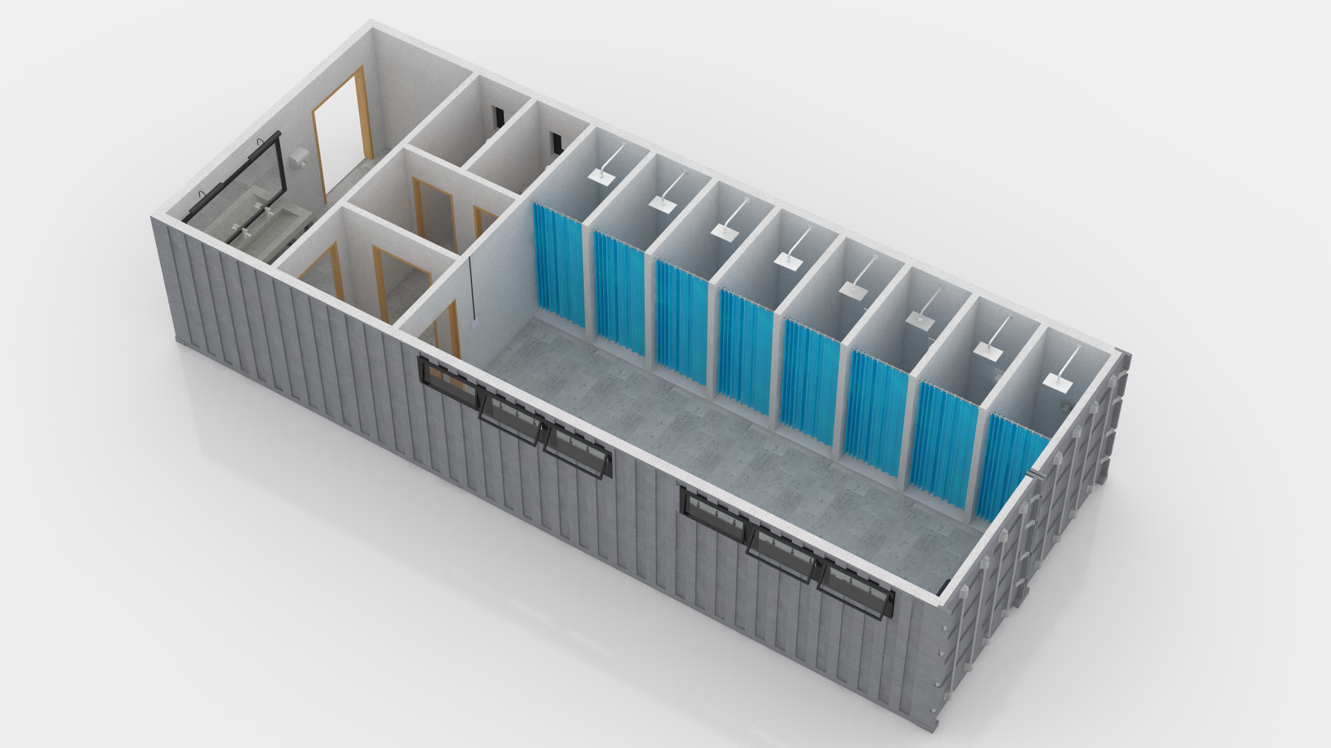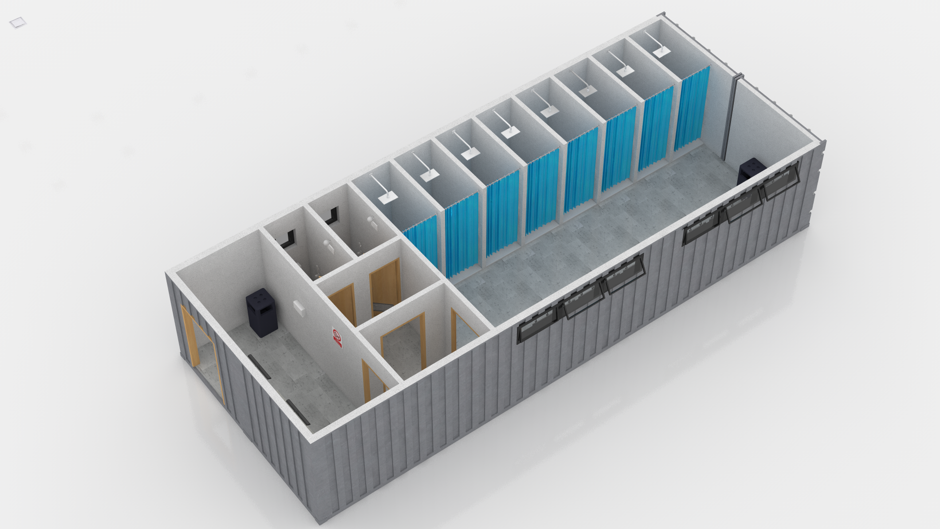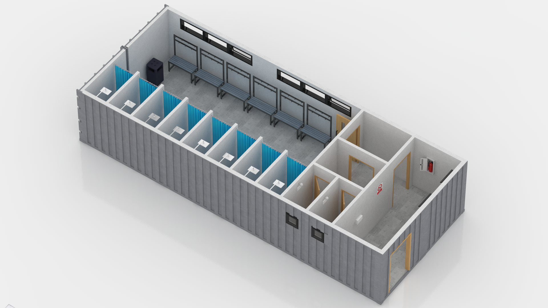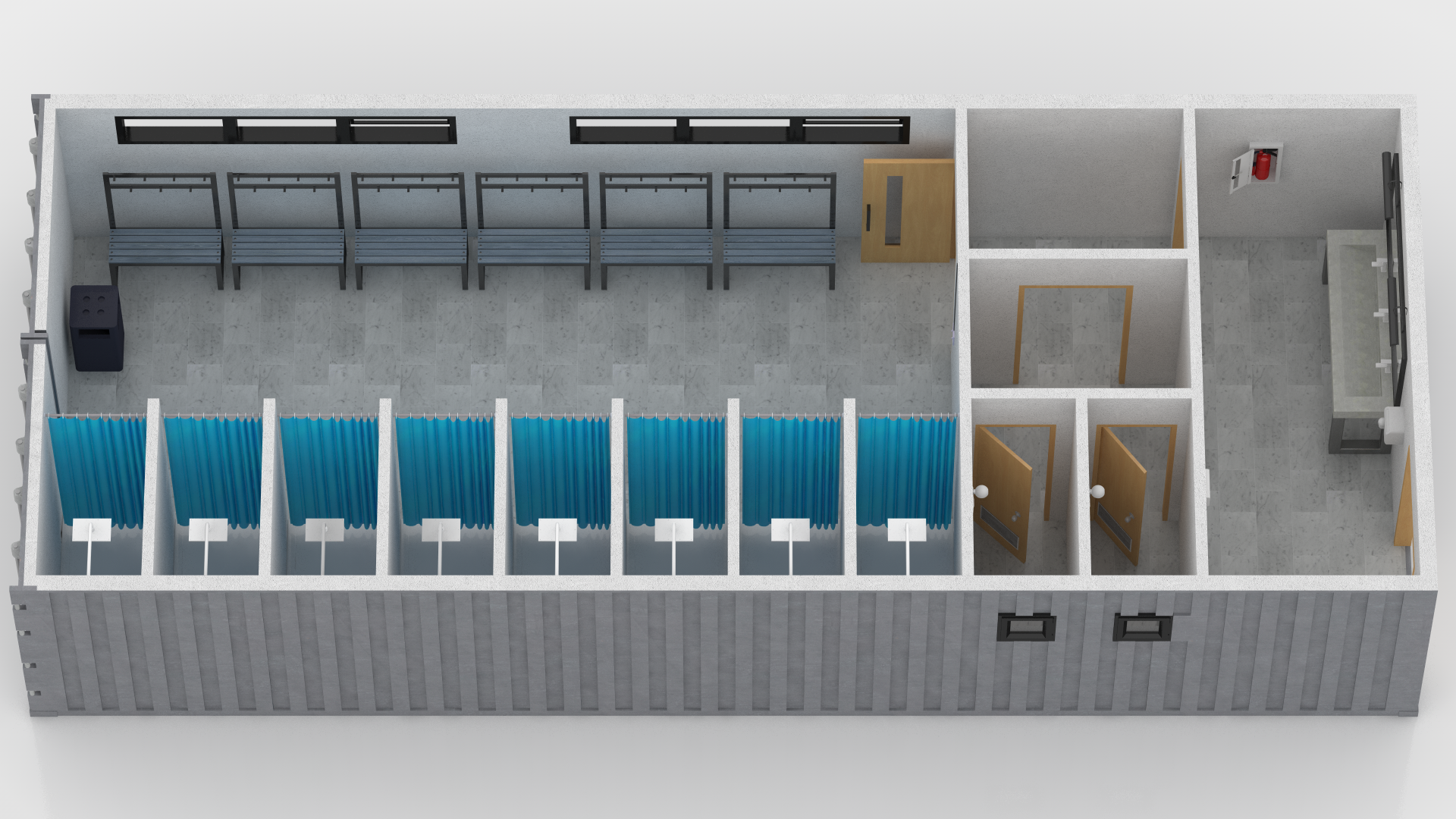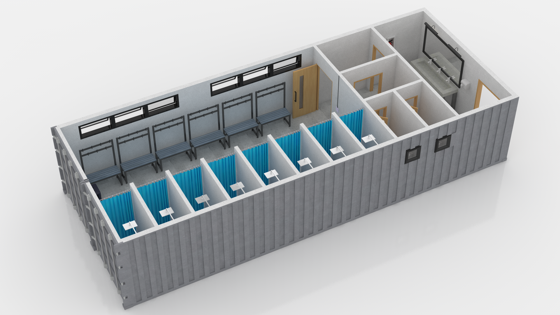 Detailed 3D model of a Changing Room Made Out of Shipping Container.