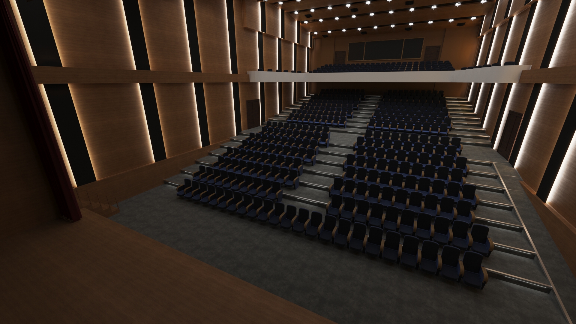 There is a congress hall model in the file. You can adapt it to your project by making changes on the seat, stage and other materials. In addition, the layout of the congress hall was created as 2 floors.