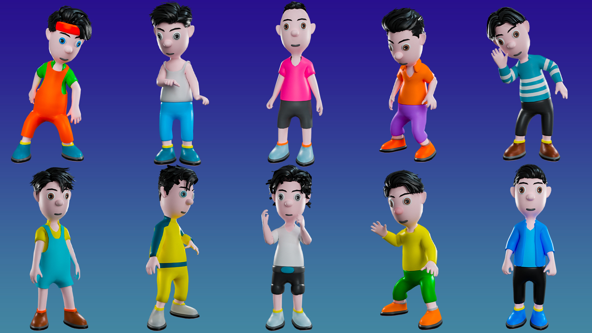 Pack of low poly characters 3d model! An amazing collection of 10 characters in the form of low poly 3D models. These 3d objects can be easily integrated into many digital media applications such as video games, apps, animations, renderings. The collection includes: 10 men.