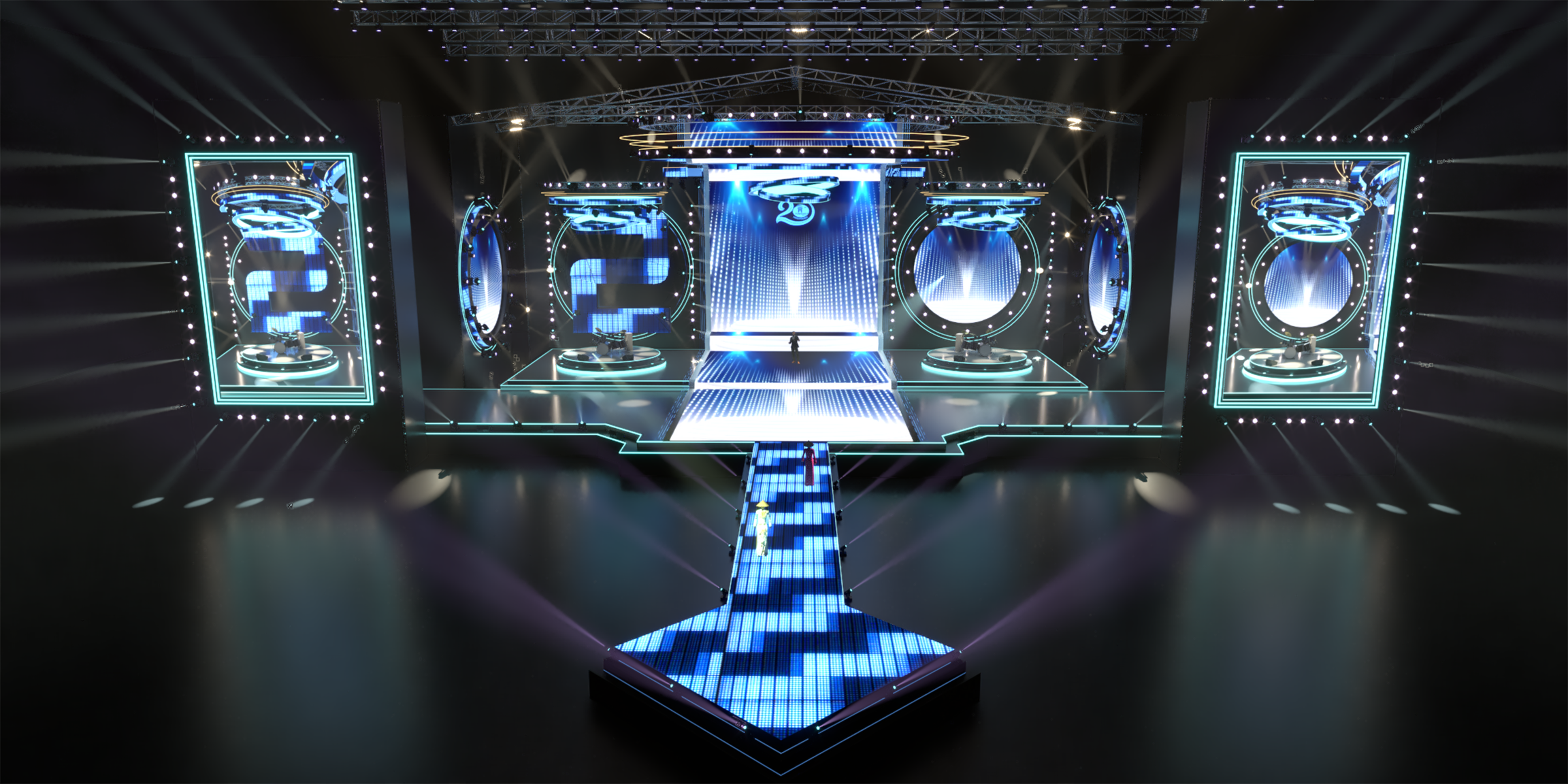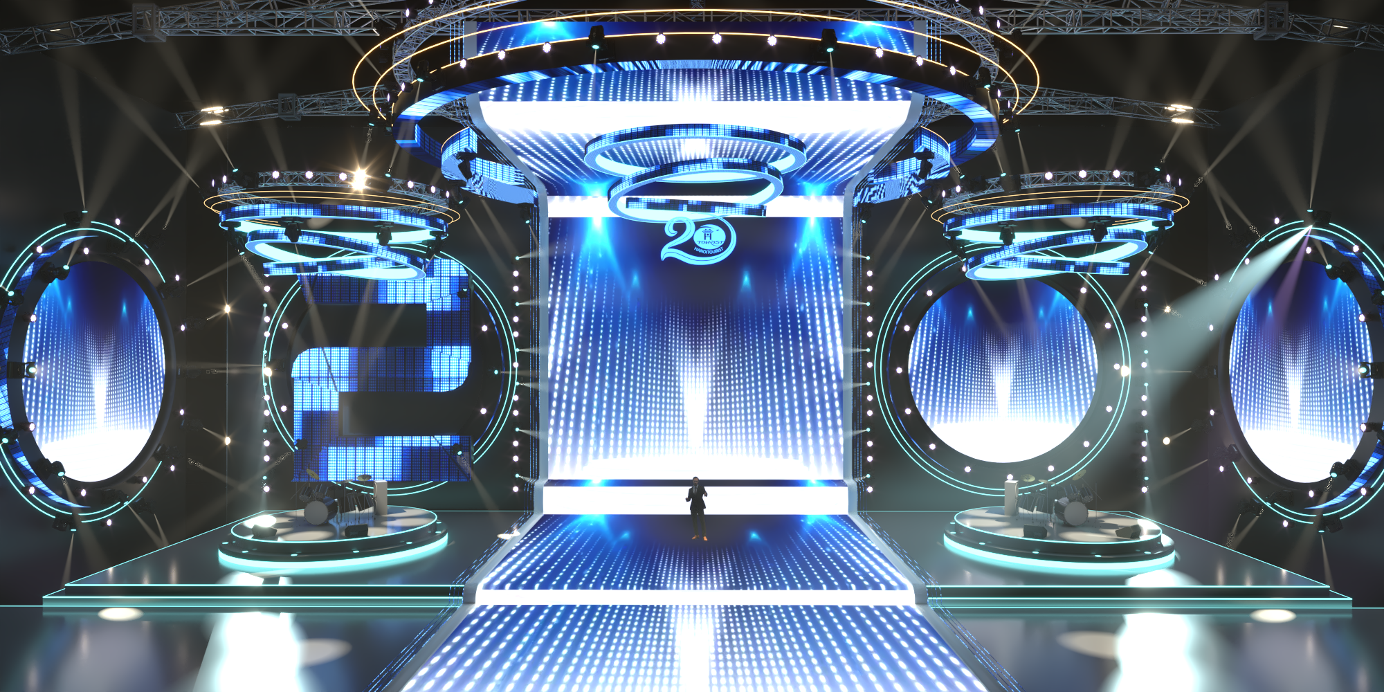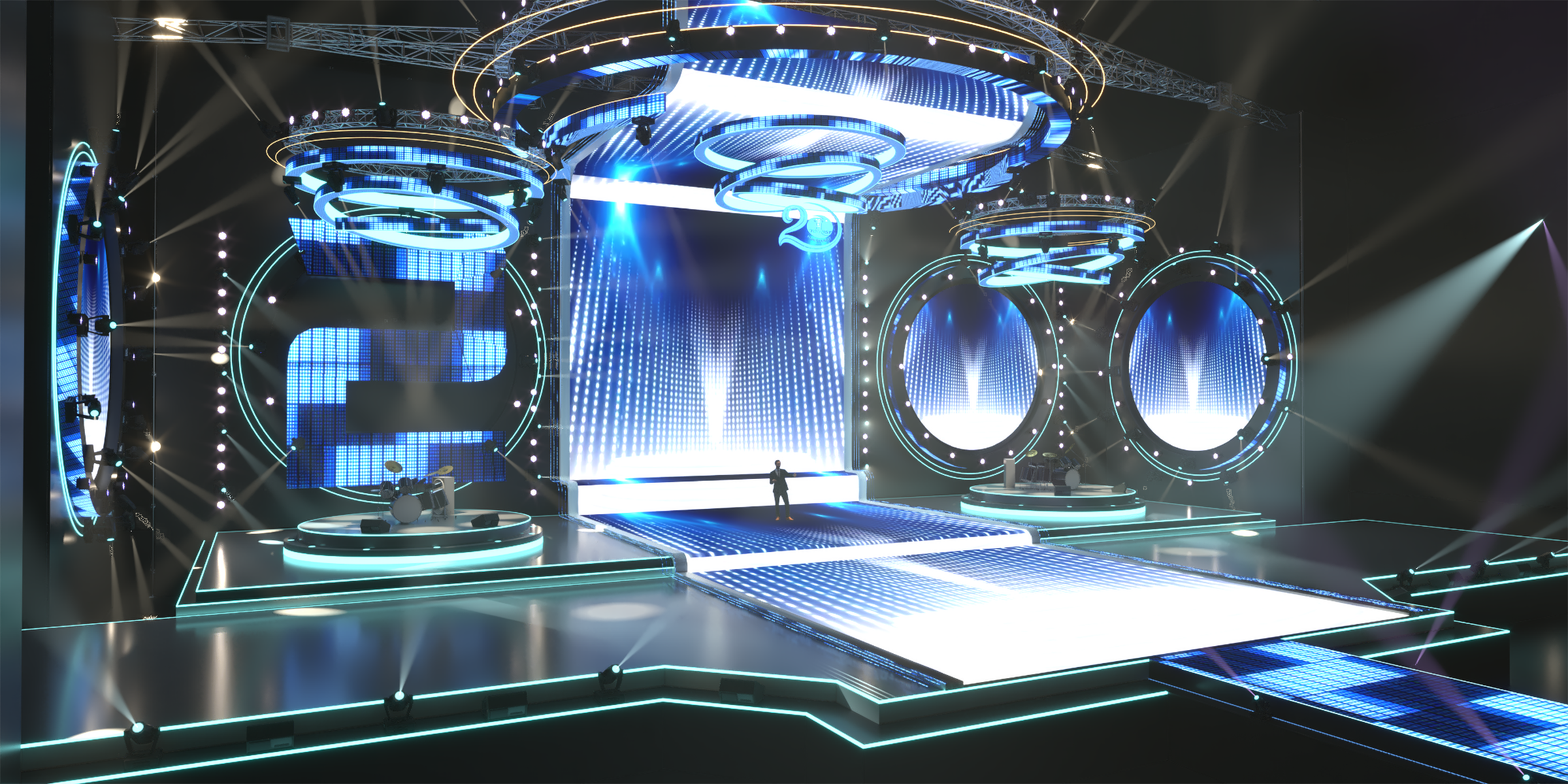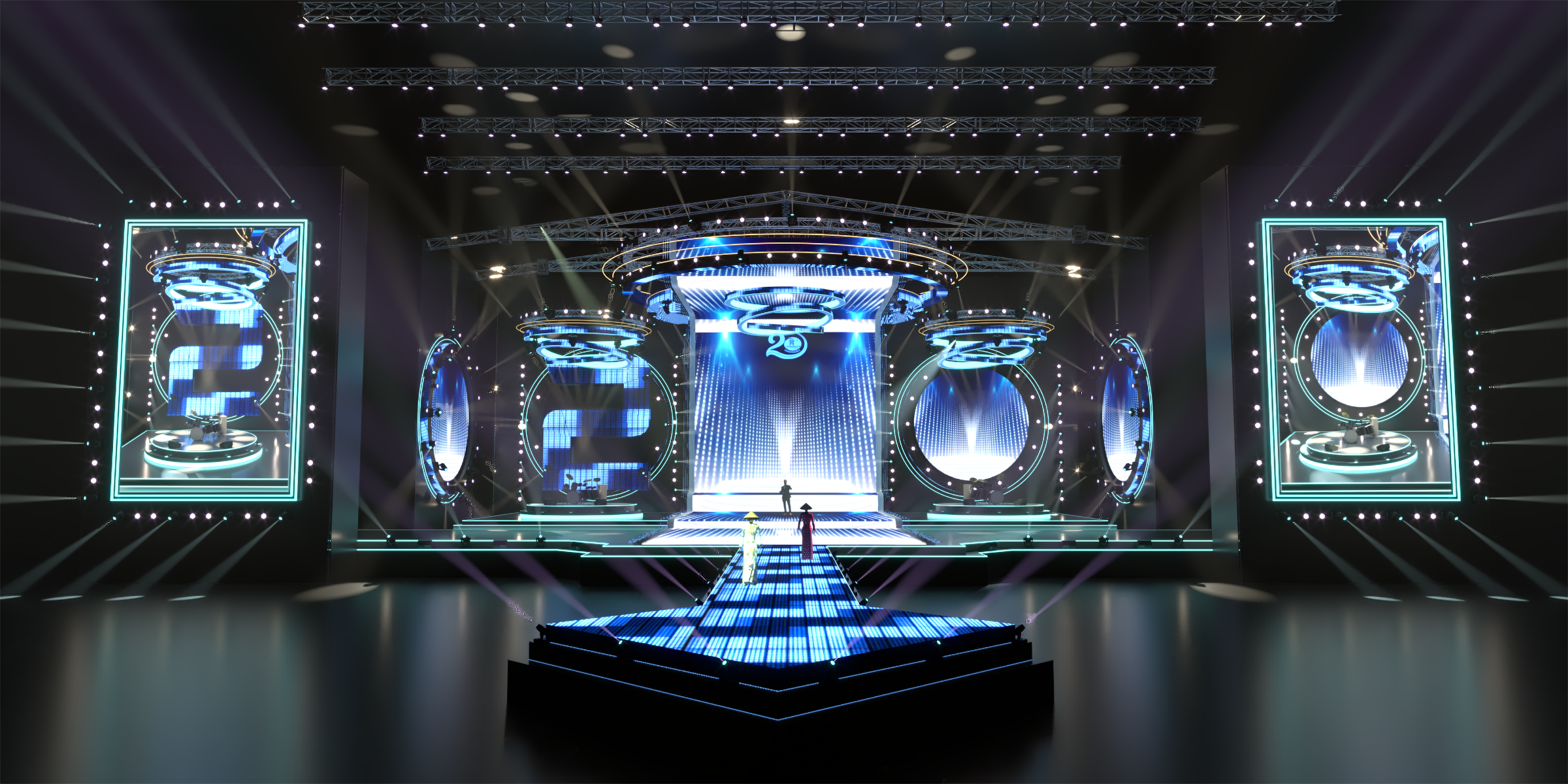 Sân khấu nhạc đếm ngược, ánh sáng, tráng lệ, trình diễn, đèn LED neon. Sân khấu nhạc đếm ngược là một thiết lập ấn tượng và thú vị thường được sử dụng để tạo sự mong chờ cho một sự kiện hoặc buổi biểu diễn. Dưới đây là mô tả về hình ảnh và âm thanh của nó: