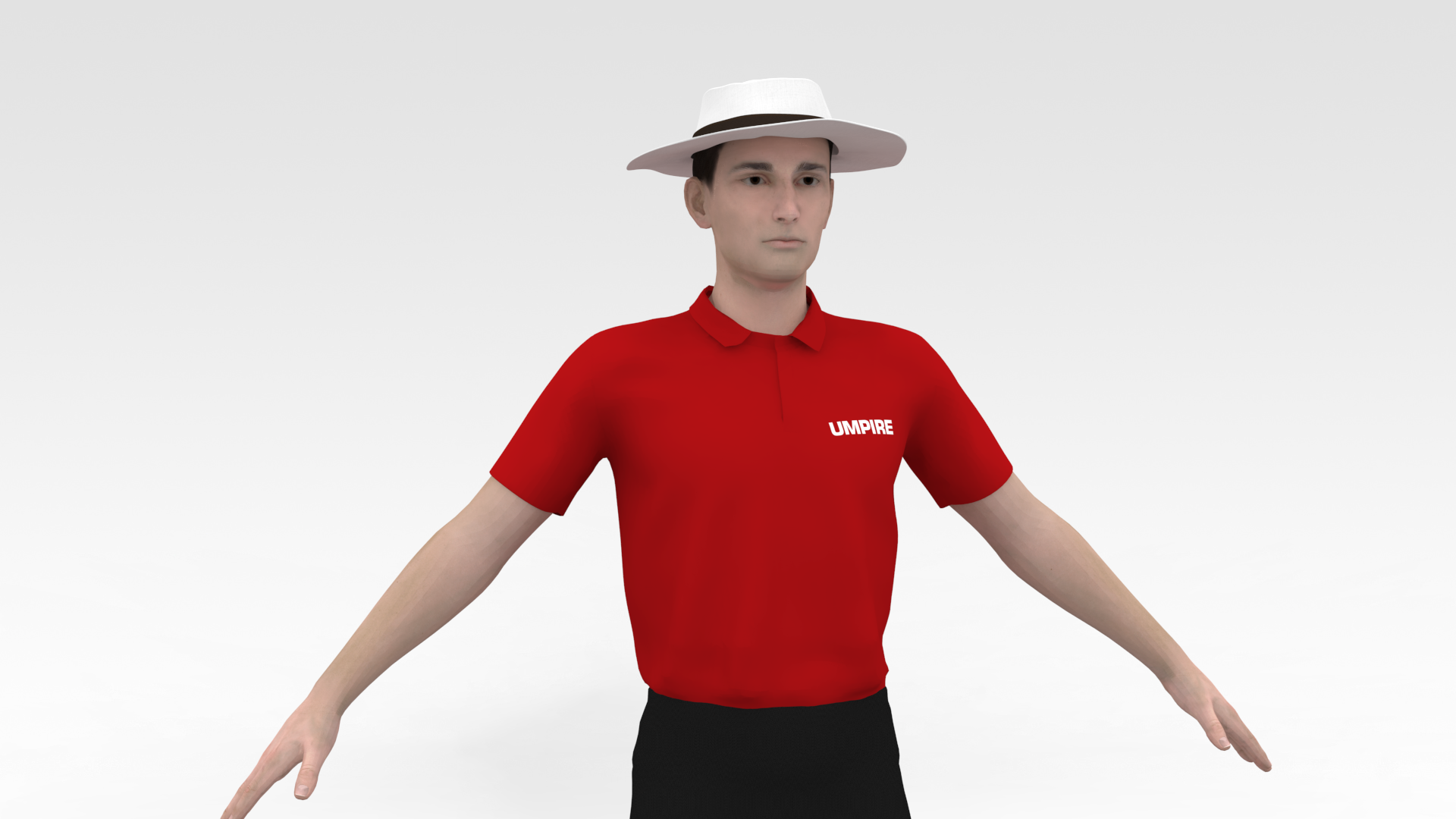 Description: Cricket Umpire 3D model is a high quality, photo real model that will enhance detail and realism to any of your game projects or commercials. The model has a fully textured, detailed design that allows for close-up renders.