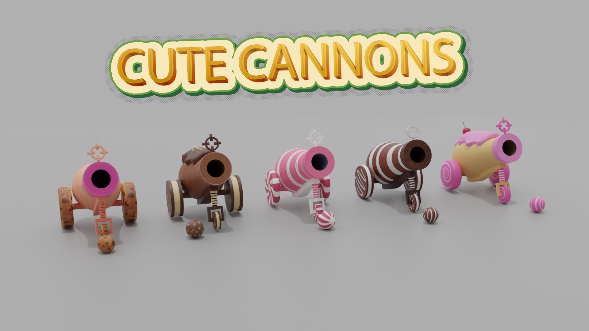 low poly cute cannons
