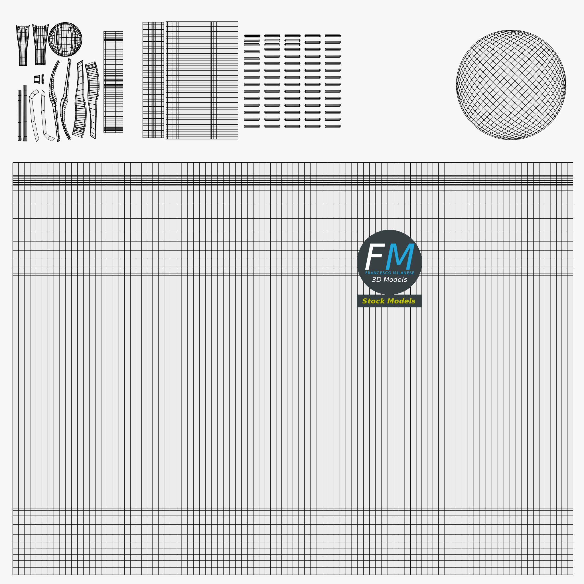 Easily customizable: UV unwrapped geometries; UV Layout maps provided in the package as png with alpha images.