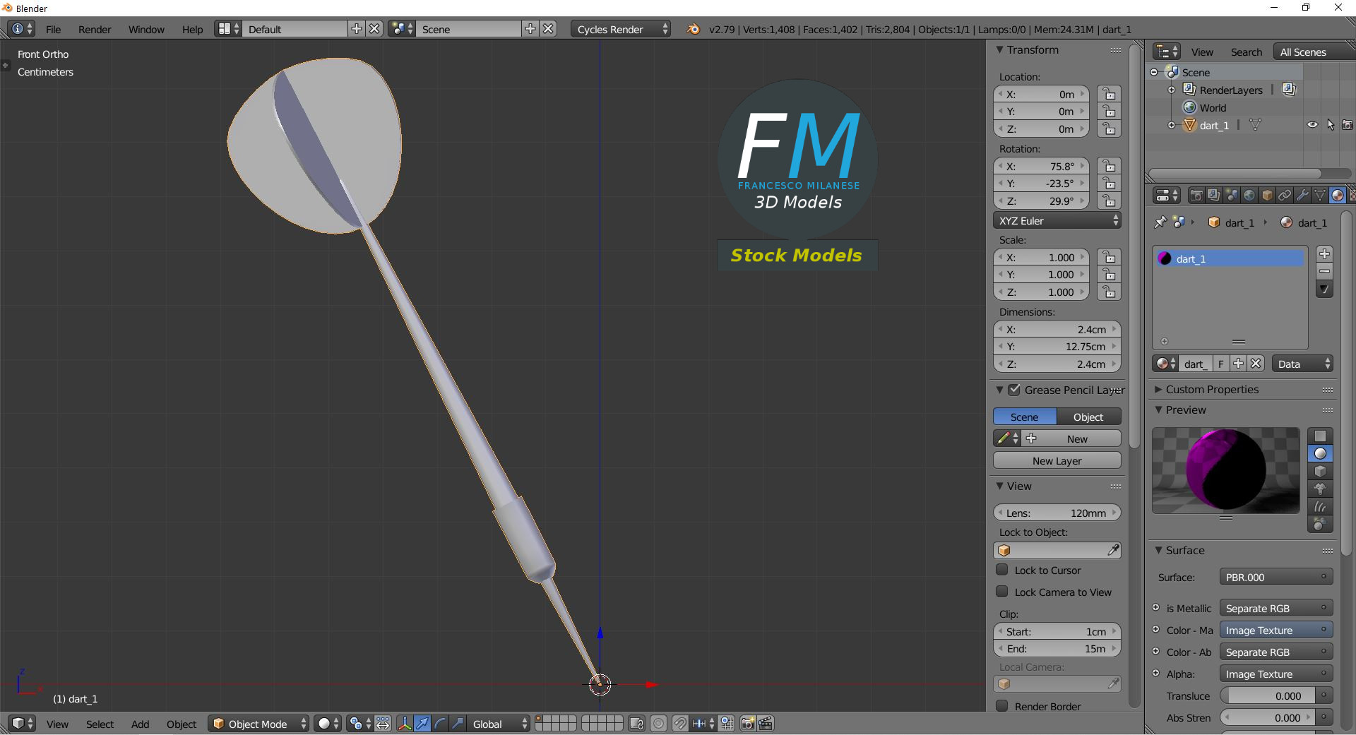 Dart 3D Model, nr. 1 in my collection. Production-ready 3D Model, with PBR materials, textures, non overlapping UV Layout map provided in the package.