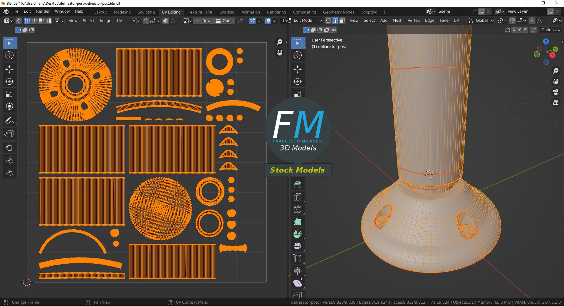 1 Object (mesh), 1 PBR Material, UV unwrapped (non overlapping UV Layout map provided in the package); UV-mapped Textures.