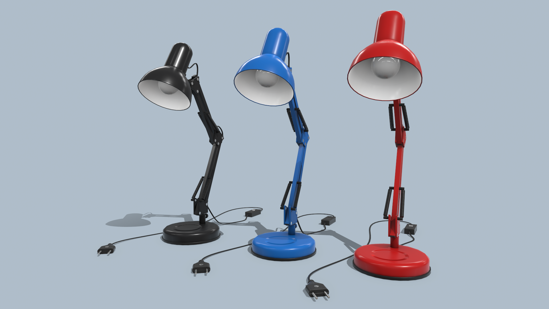 Game ready low-poly Desk Lamp model in 3 colors with PBR textures for game engines/renderers. This product is intended for game/real time/background use. This model is not intended for subdivision. Geometry is triangulated. Model unwrapped manually. All materials and objects named appropriately. Scaled to approximate real world size. No special plugins needed. .obj, .fbx versions exported from Blender 2.83. 4096×4096 textures in png format: – PBR Metallic/Roughness textures: BaseColor, Metallic, Roughness, Normal(DirectX), Normal(OpenGL), AO, Emission.