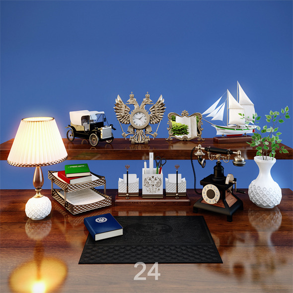 A set of ten models of desktop accessories