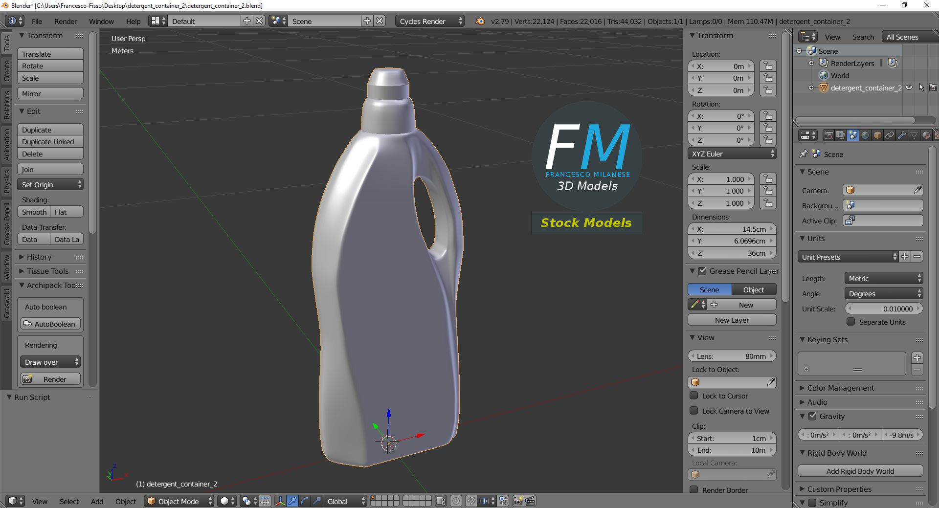 Detergent container 3D Model, nr. 2 in my collection. Perfect for a mock-up, product shot or advertising. Production-ready 3D Model, with PBR materials, textures, non overlapping UV Layout map provided in the package.