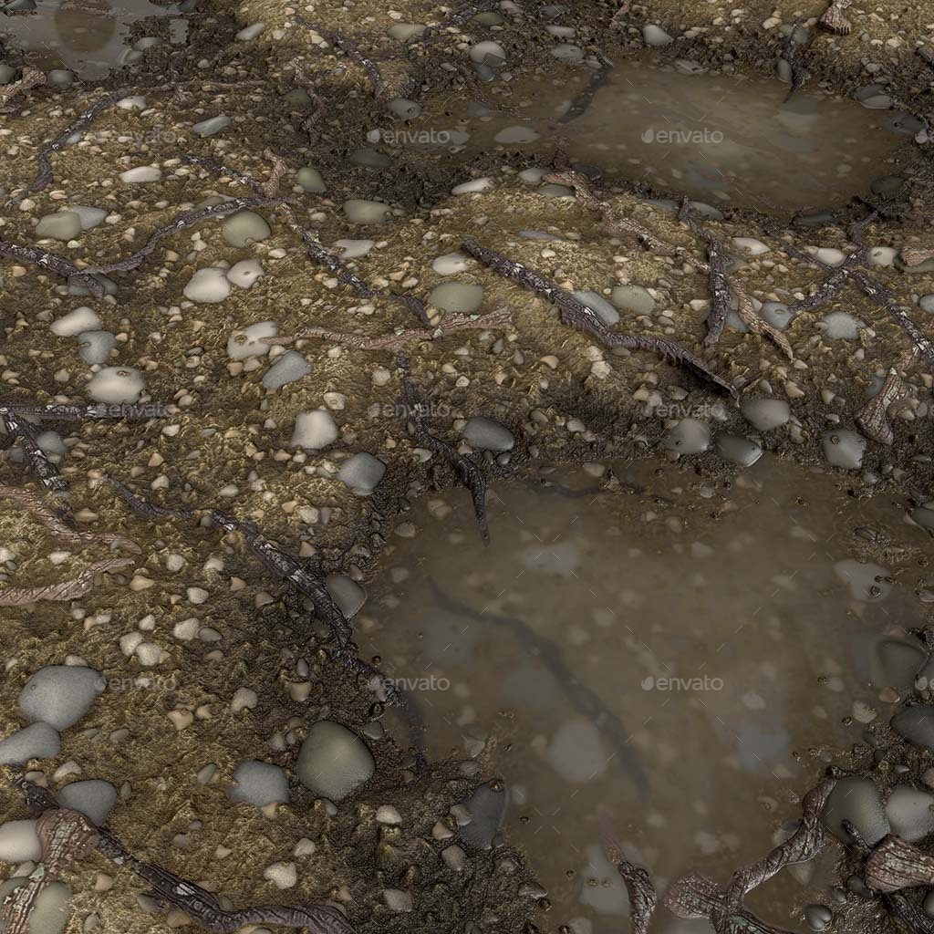 This material is made completely Substance Designer. The .sbasr file has multiple parameter to tweak. It’s possible to set pebbles, stones, puddles and leaves visibility or set the roughness ground material. If you don’t need the .sbsar format you can use .png file to set the material. Use it and speed up your works!