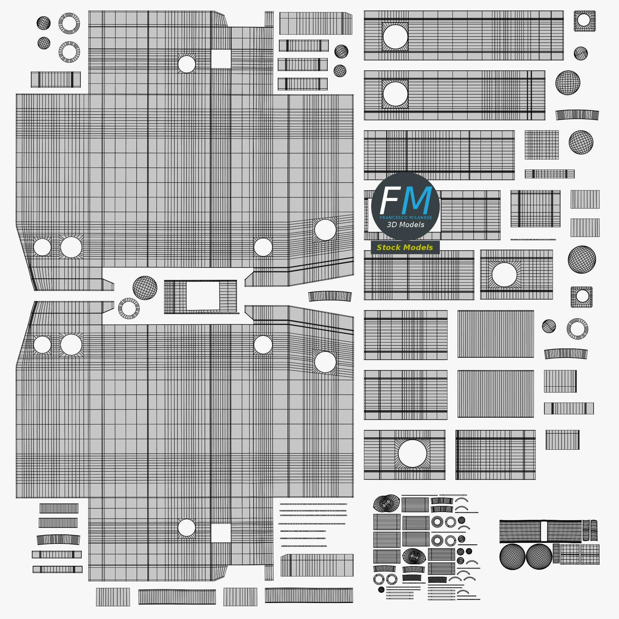 Easily customizable: UV unwrapped geometries, so you can create new Textures (or modify the existing ones) using the UV Layout maps provided in the package (as png with alpha).