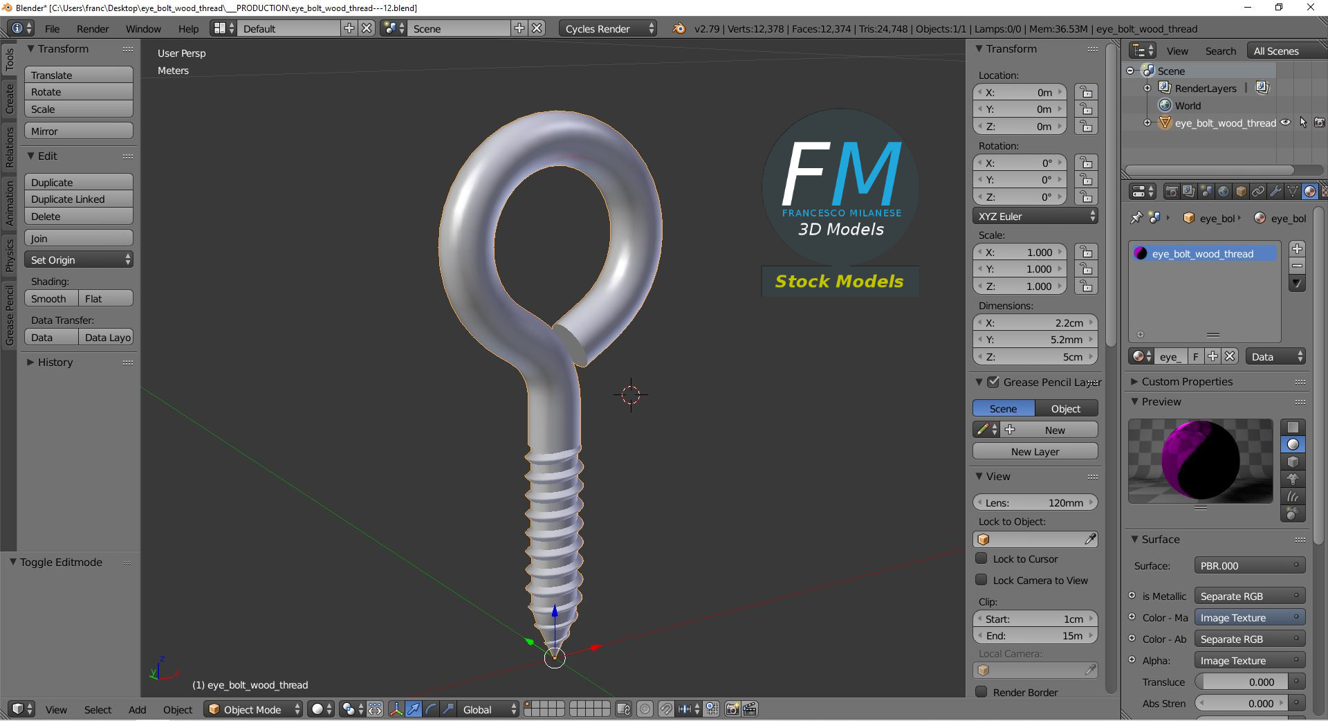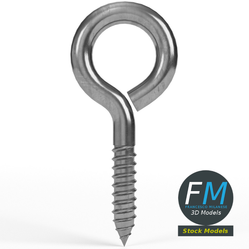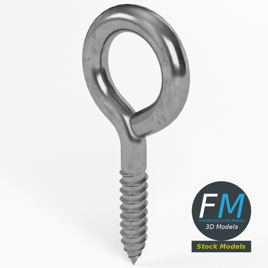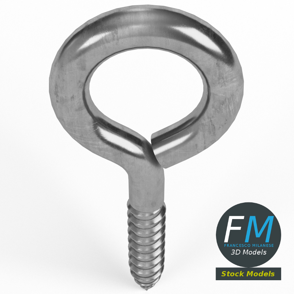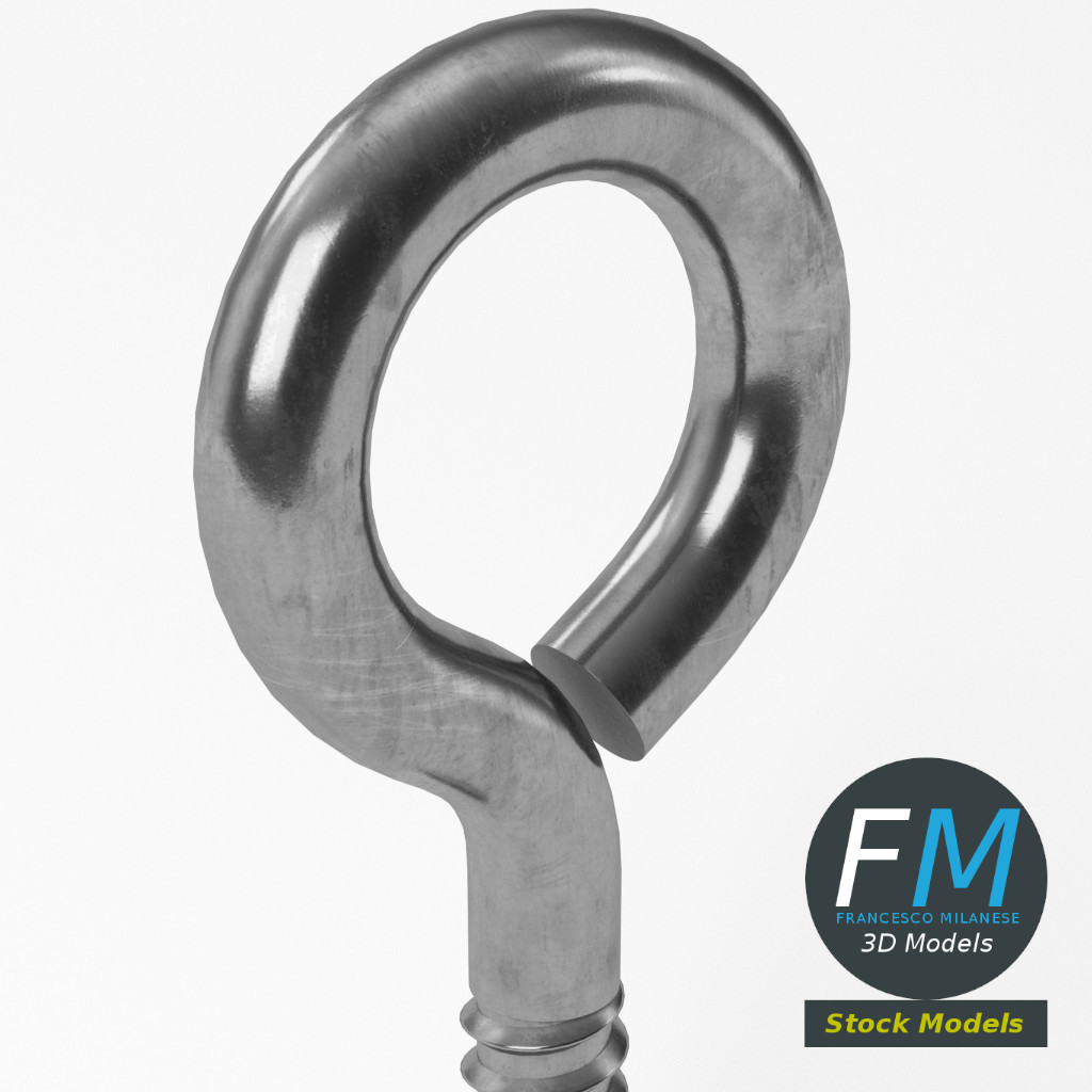 Eye bolt wood thread 3D Model. Production-ready 3D Model, with PBR materials, textures, non overlapping UV Layout map provided in the package.