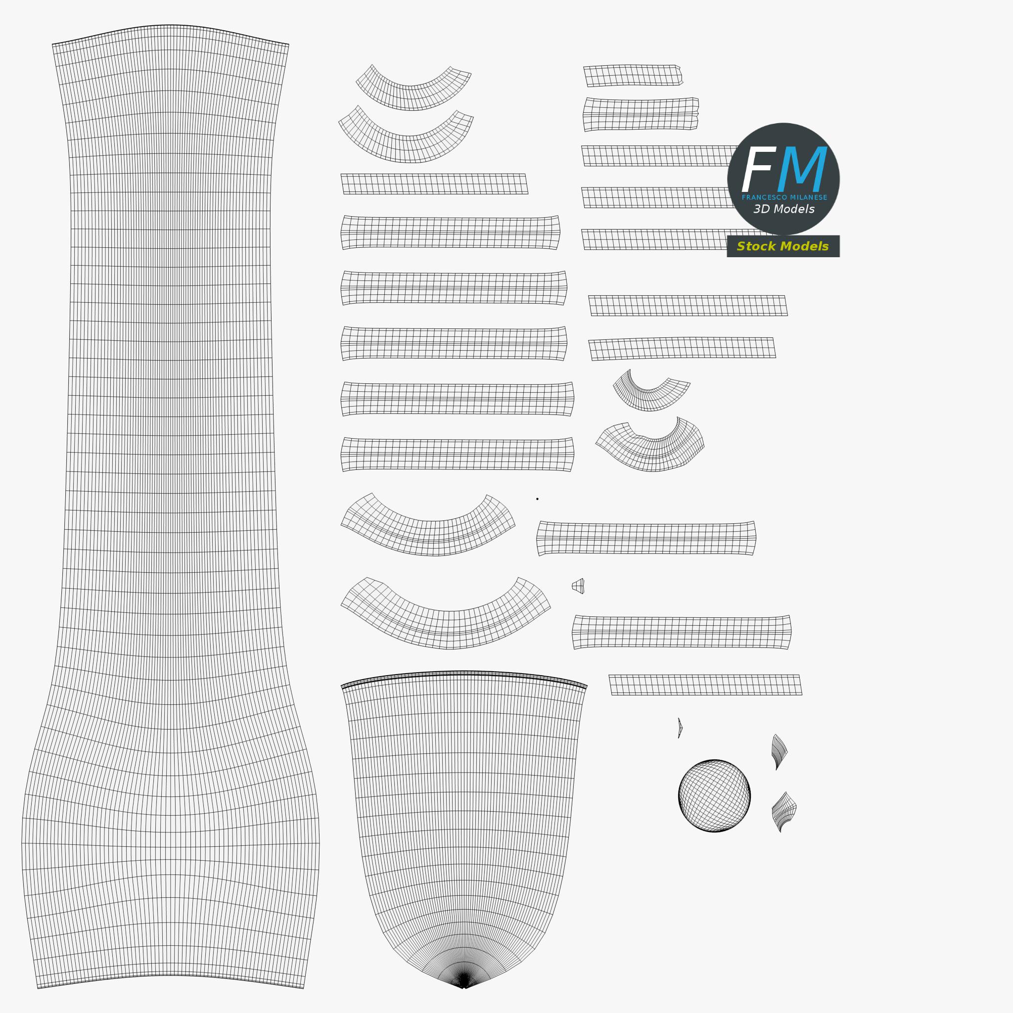 Easily customizable: UV unwrapped geometries, so you can create new Textures (or modify the existing ones) using the UV Layout maps provided in the package (as png with alpha).