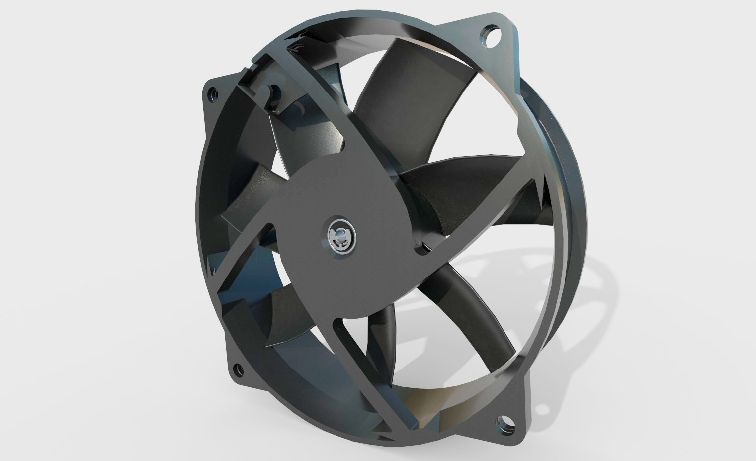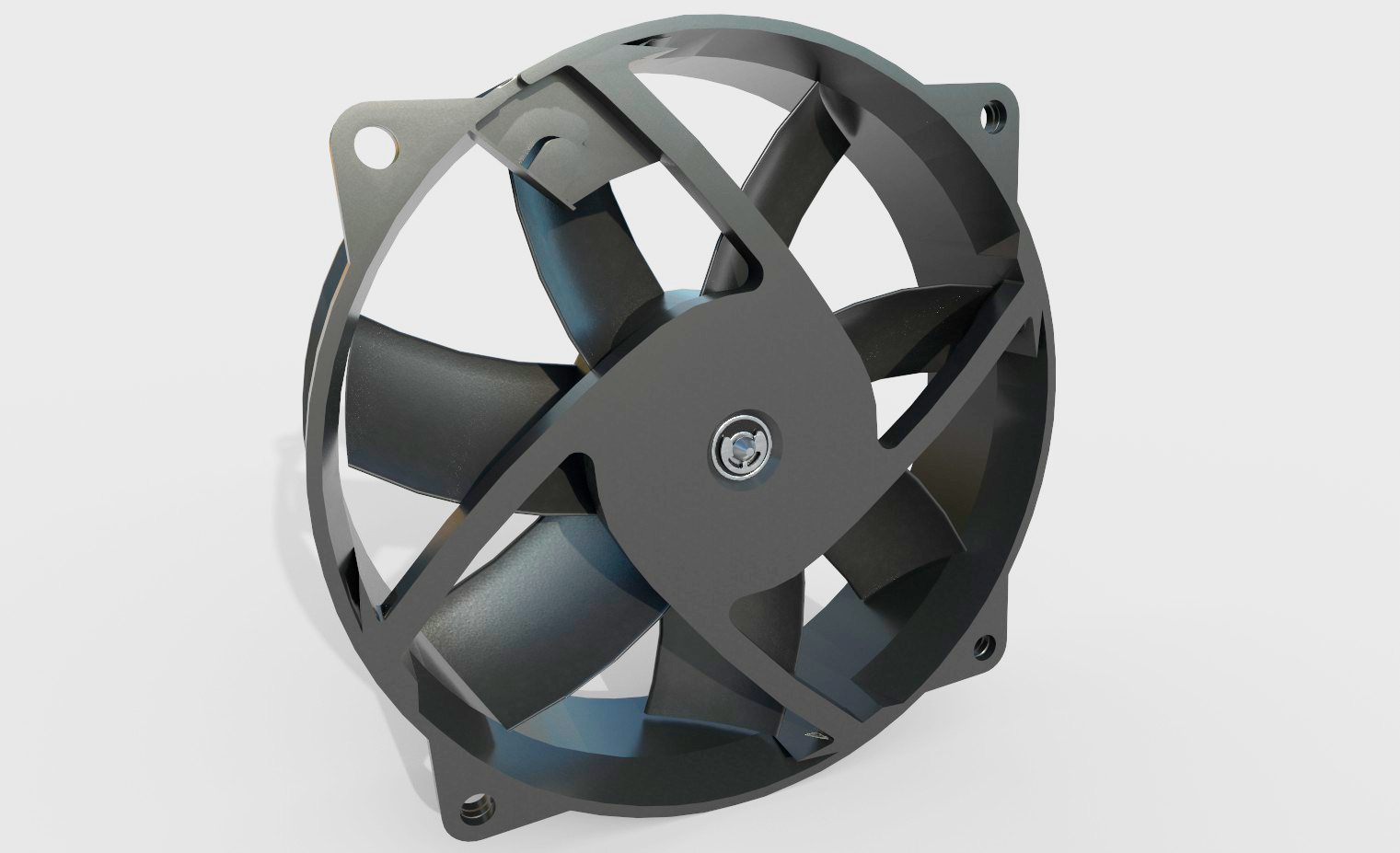 The included file formats are .fbx and .obj, along with the necessary textures. The model does not have rigging, but it has UV layouts without overlapping, making it easy to work with and integrate into your project. The fan features a sleek and modern design, with a black exterior and silver blades angled for maximum airflow. It is compact and perfect for any desktop computer setup.